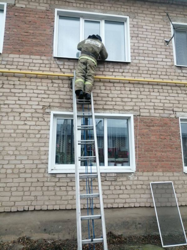 На улице Степной в квартире на втором этаже двухлетний ребёнок закрыл входную дверь изнутри когда взрослые вышли в магазин.Родители обратились в полицию. Сотрудники МВД попросили о содействии пожарных.Бойцы 7 ПСЧ проникли через окно поднявшись...