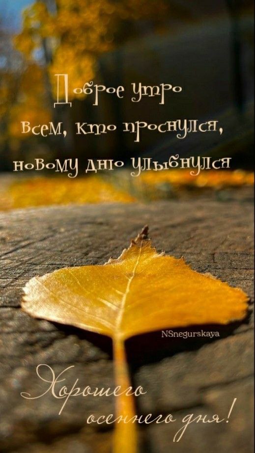 Пусть этот осенний день начнётся с улыбки и хорошего настроения. Пусть утренние лучи солнца согреют вас своим теплом, а свежий воздух придаст бодрости и энергии на весь день.