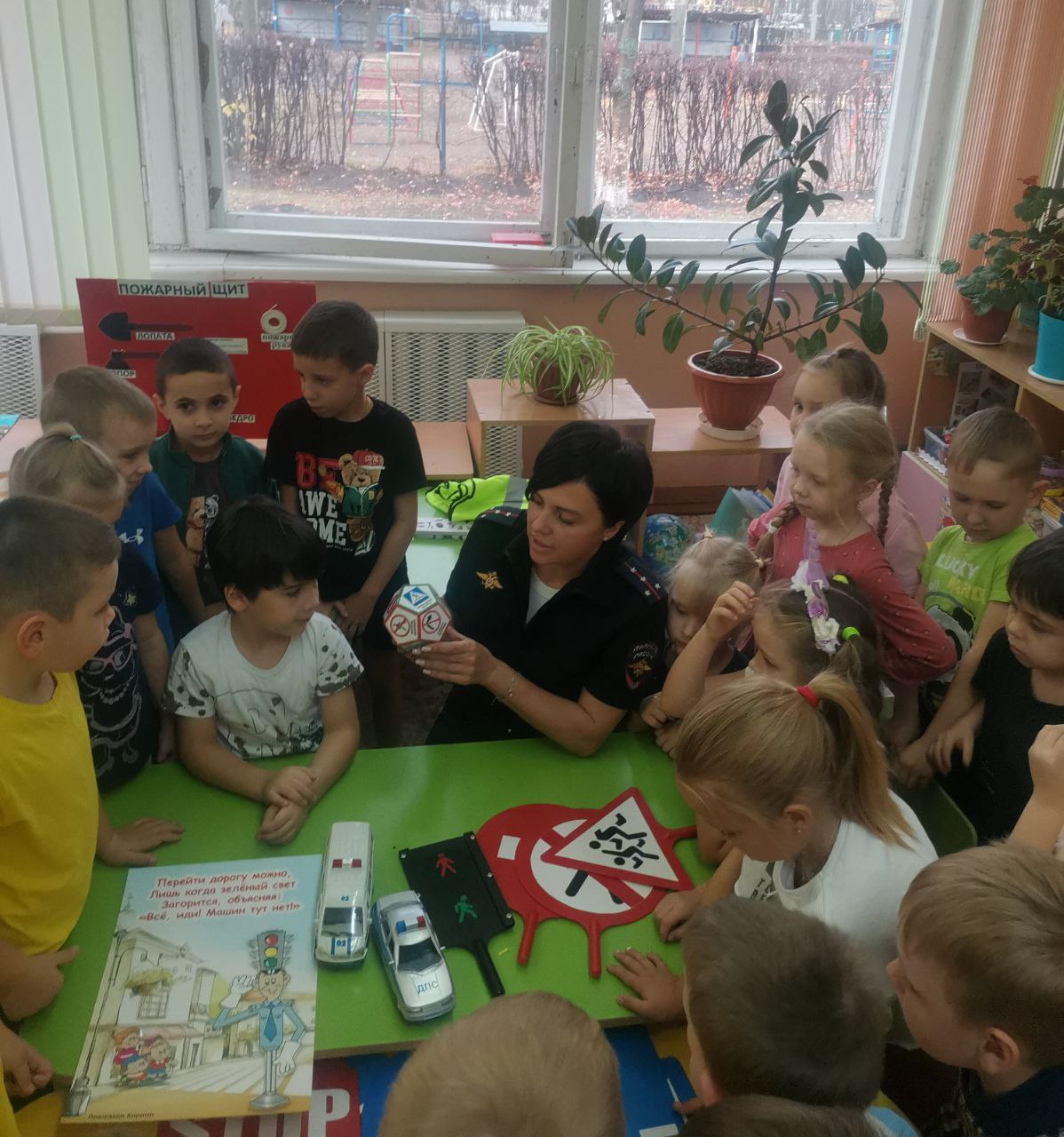 Инспекторы ГИБДД объясняли, где и как правильно переходить проезжую часть, чем опасны игры вблизи проезжей части. Малыши принимали активное участие в беседе, внимательно слушали про виды дорожных знаков и показали хорошие знания, отвечая на вопросы инспектора и отгадывая загадки