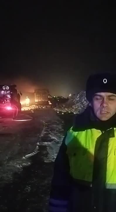 Видео с места дорожно-транспортного происшествия, произошедшего сегодня ночью на федеральной автомобильной дороге М-5 «Урал» в Переволоцком районе Оренбургской области.