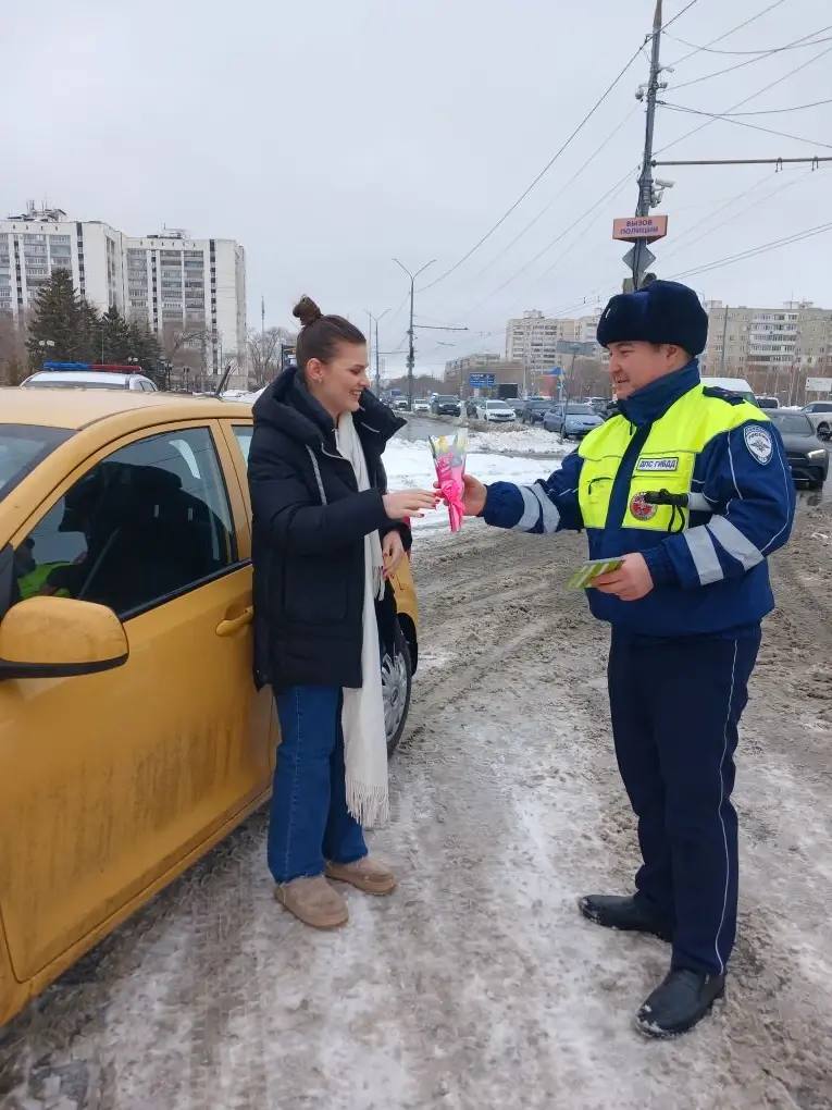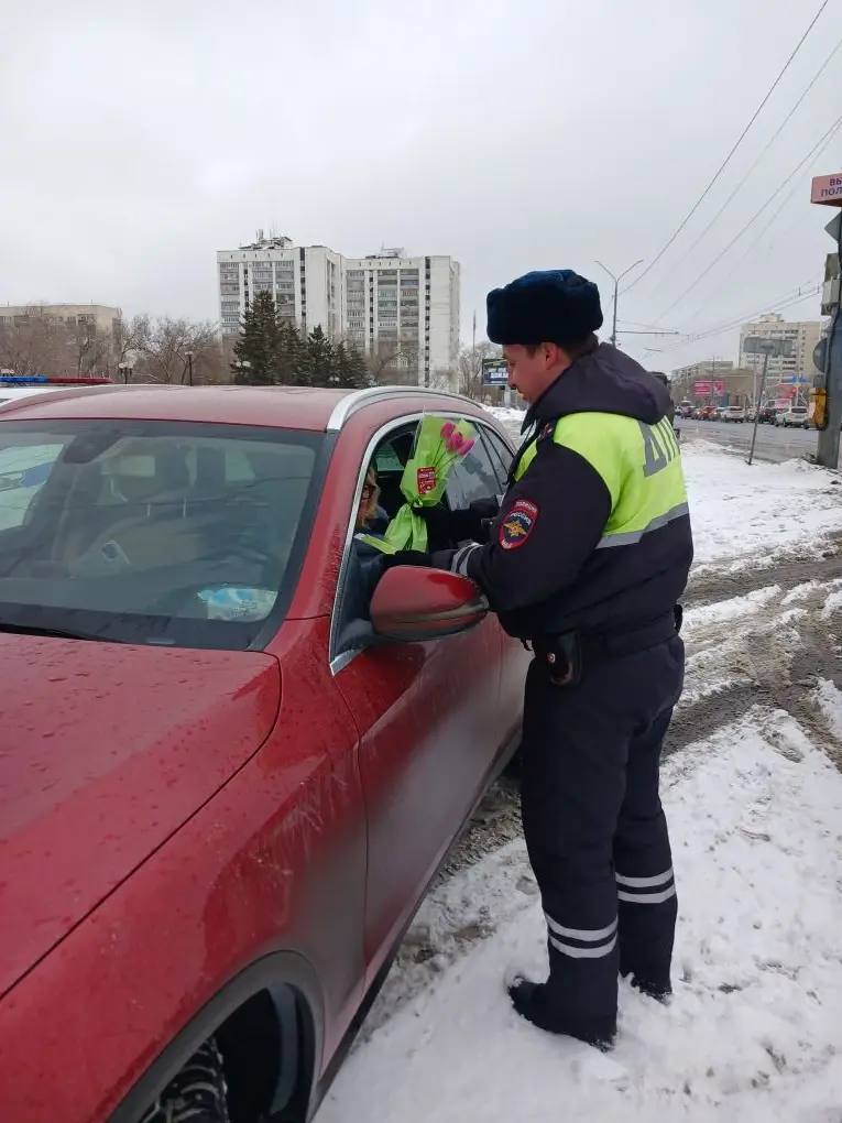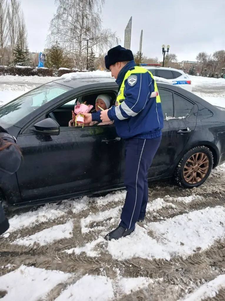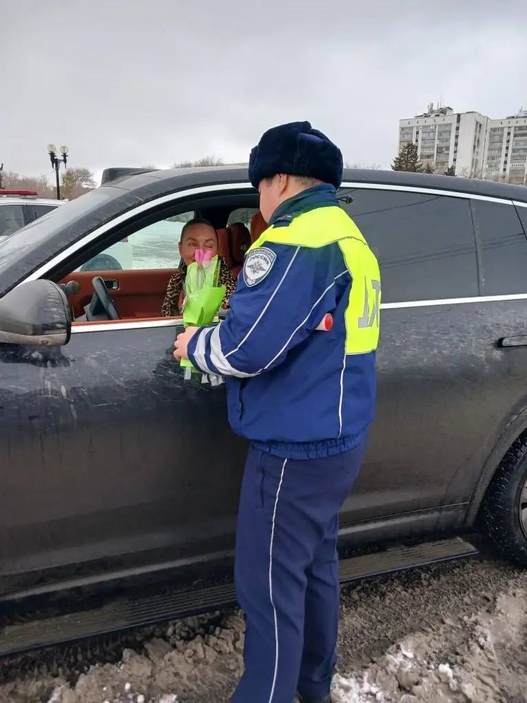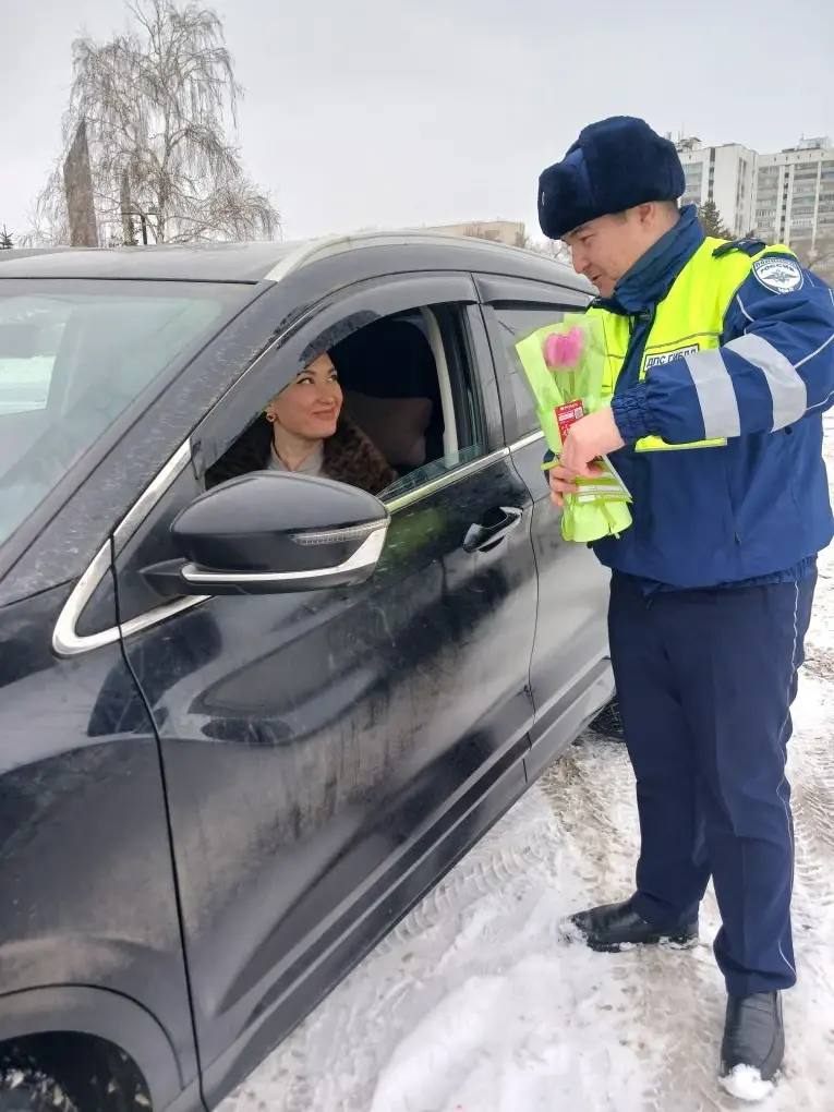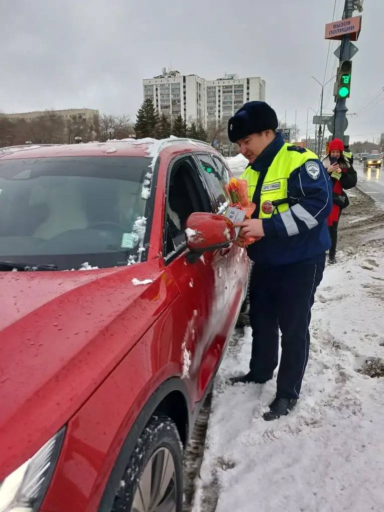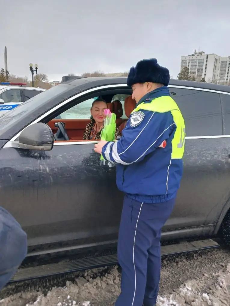 В преддверии Международного женского дня сотрудники Госавтоинспекции Оренбургской области провели праздничную акцию на дорогах. Вместо привычной проверки документов автоледи ожидал приятный сюрприз — сотрудники поздравляли женщин-водителей с наступающим праздником и вручали цветы.