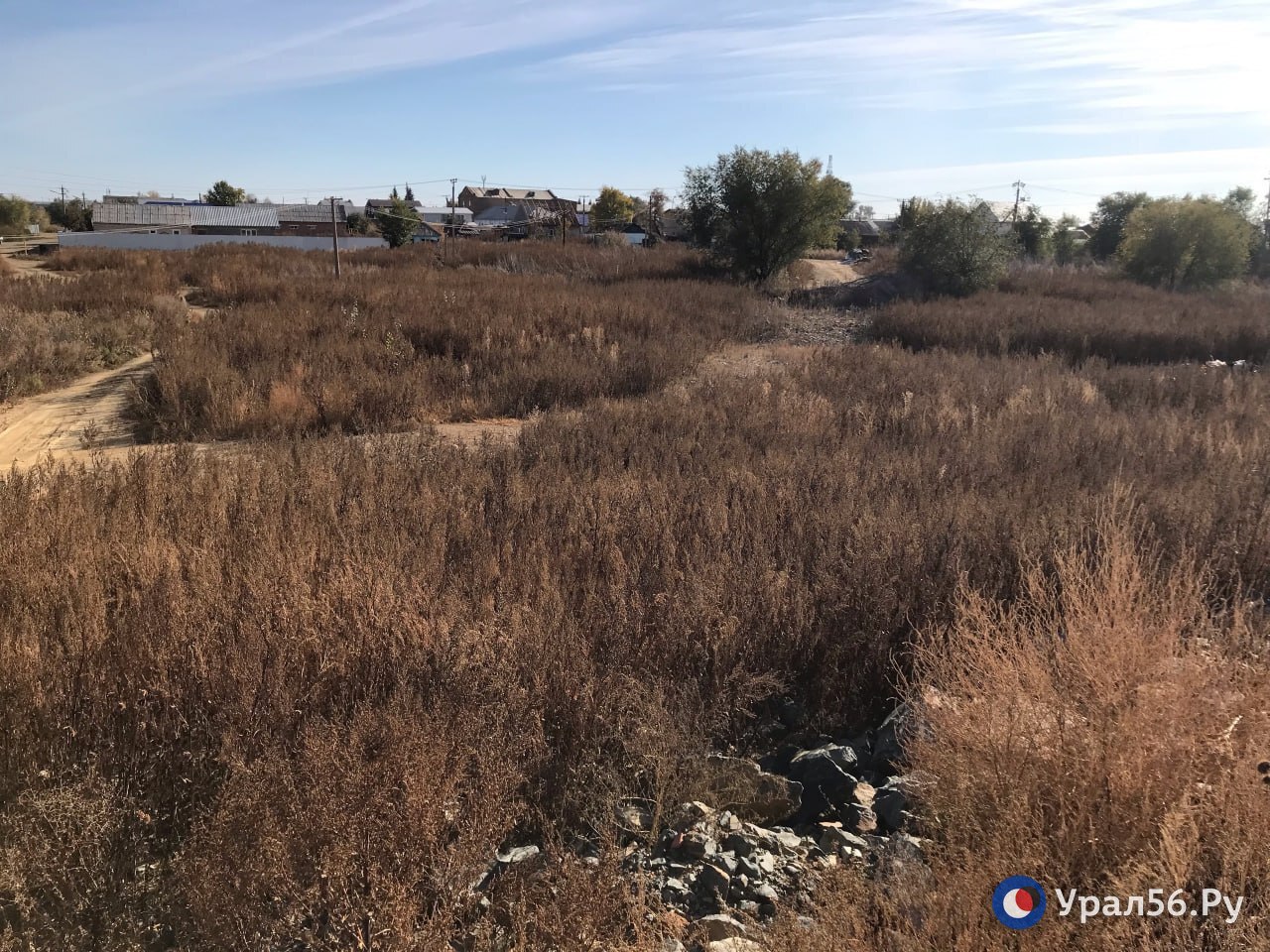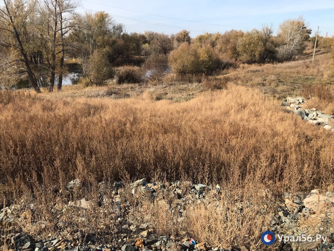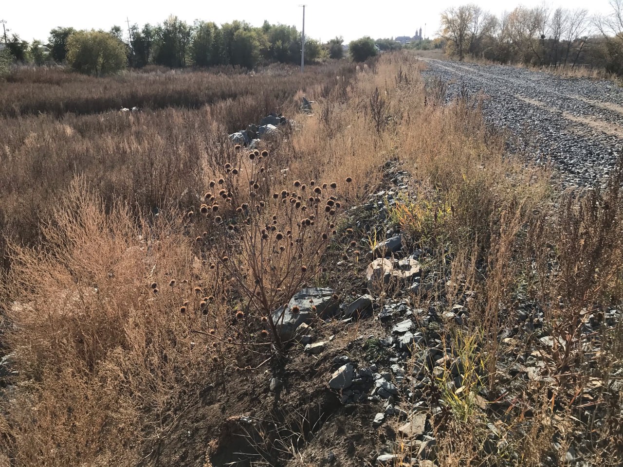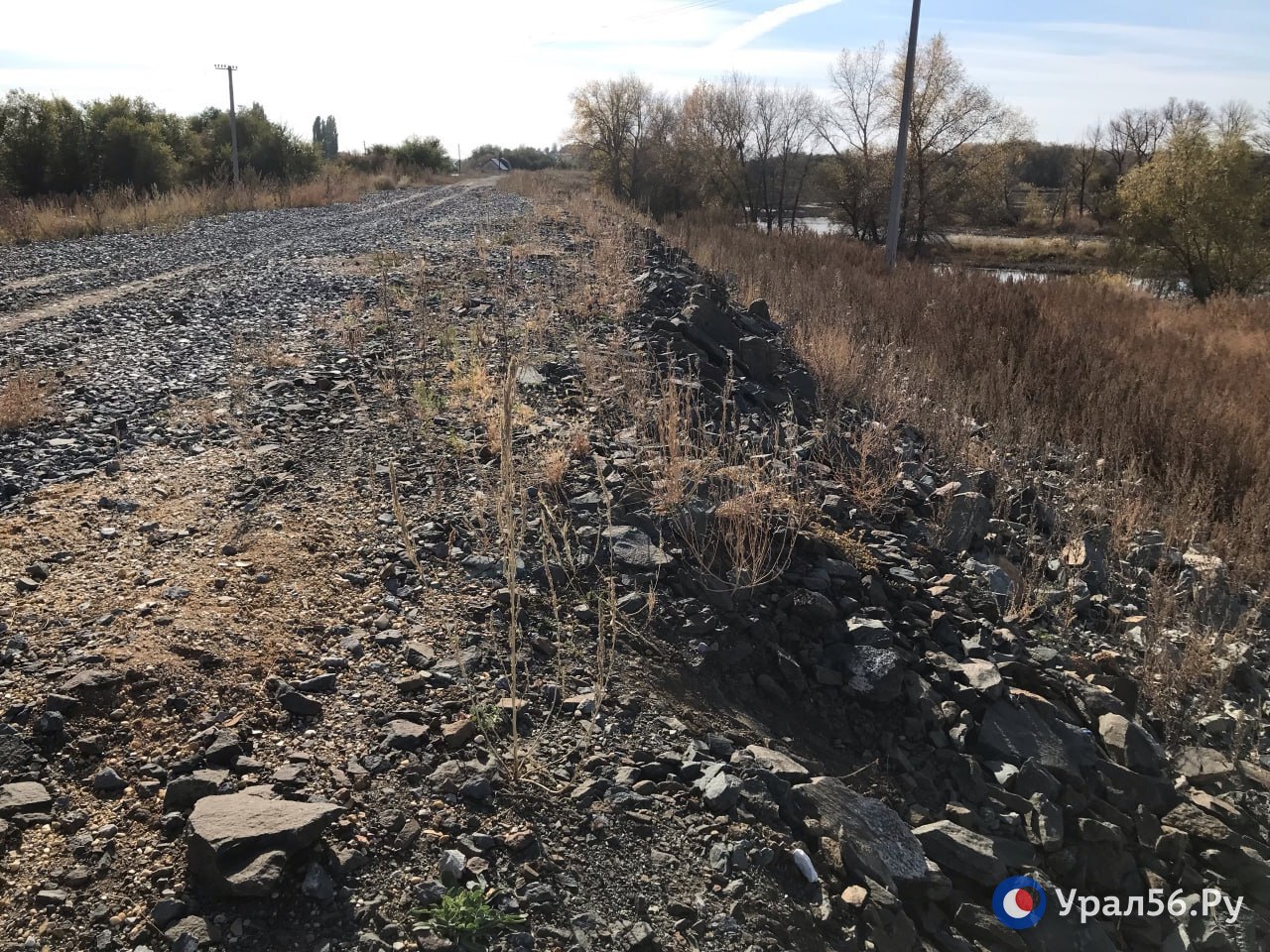Со стороны жилых домов дамба уже начала зарастать сорняками, со стороны Урала - нет. Там под камнями уложена пленка.