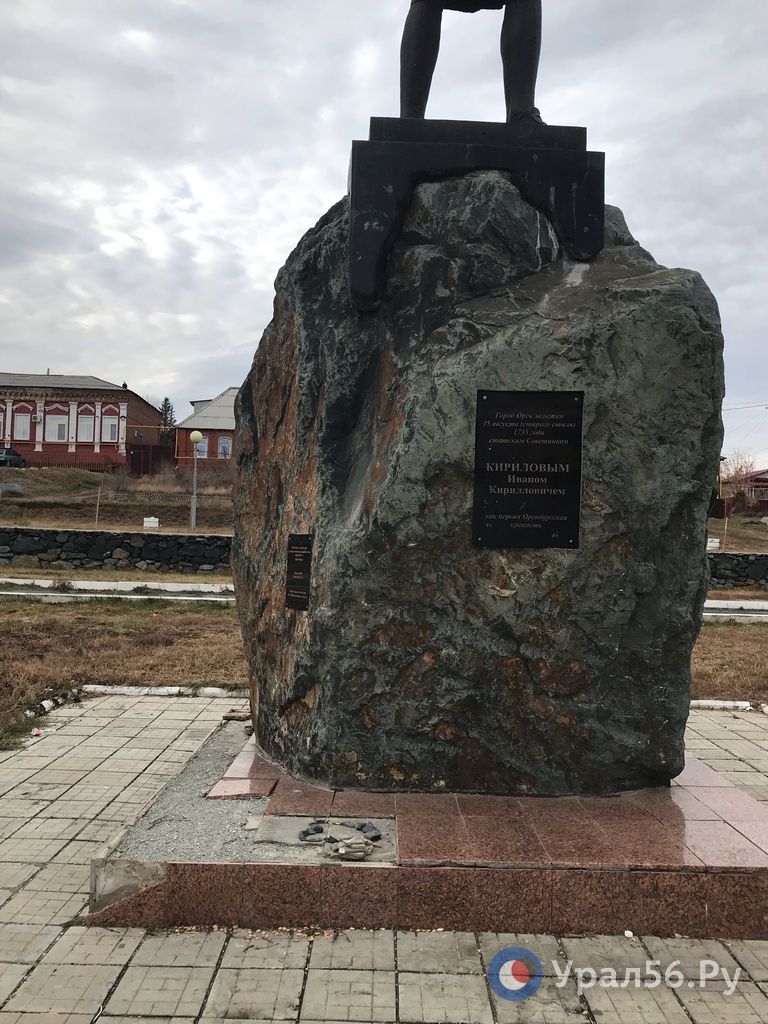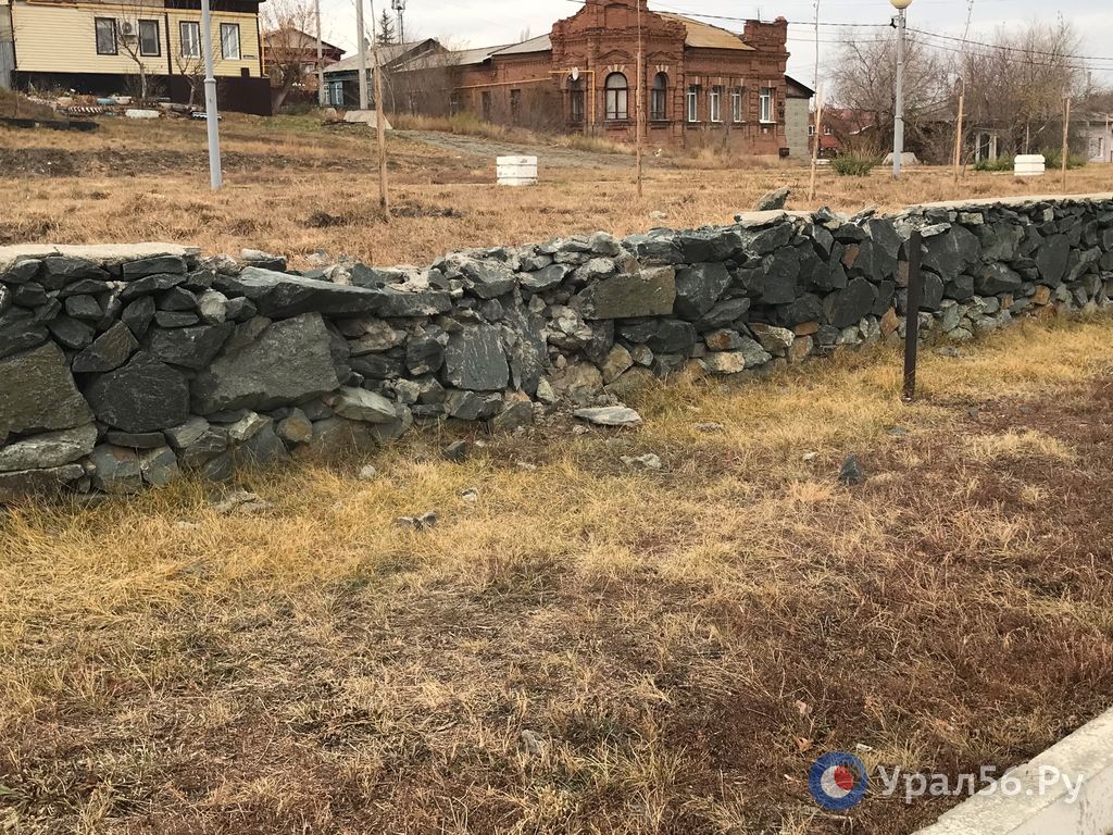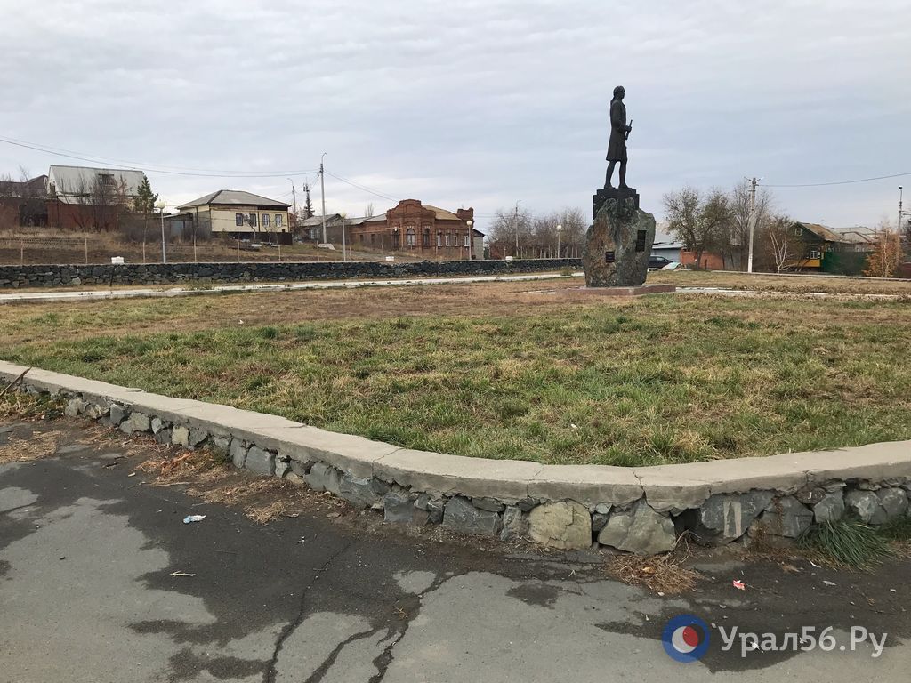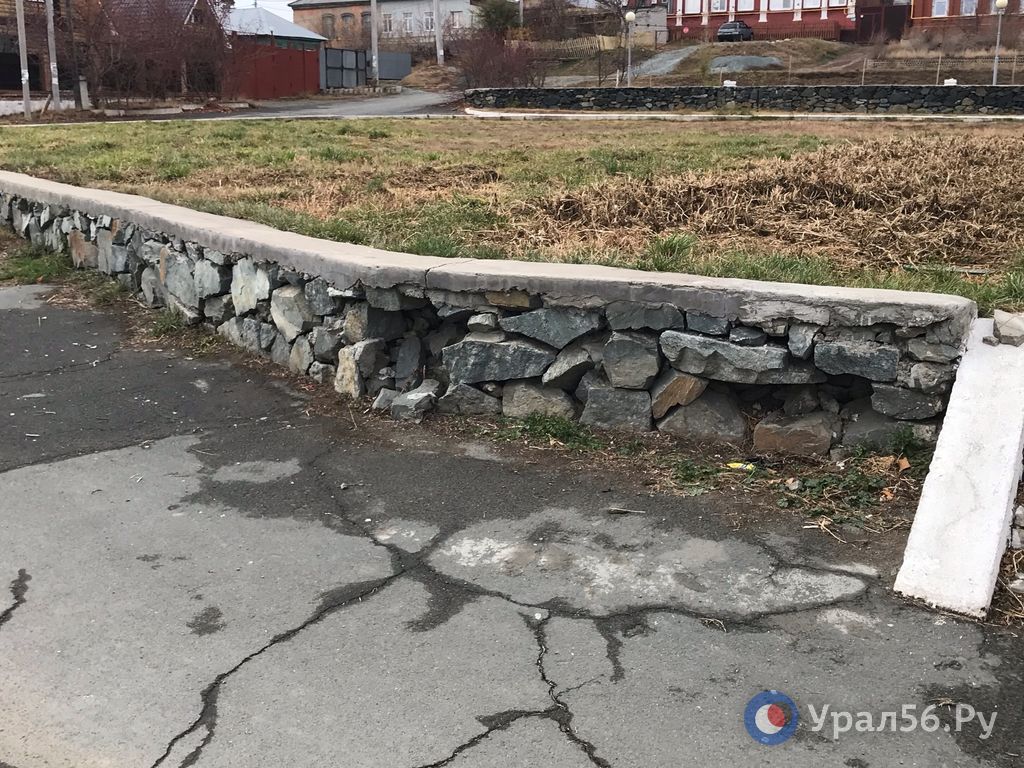 В ее центре стоит памятник основателю Орска, а на территории – несколько газонов, ограниченных каменными стенками. Это основные элементы пространства.