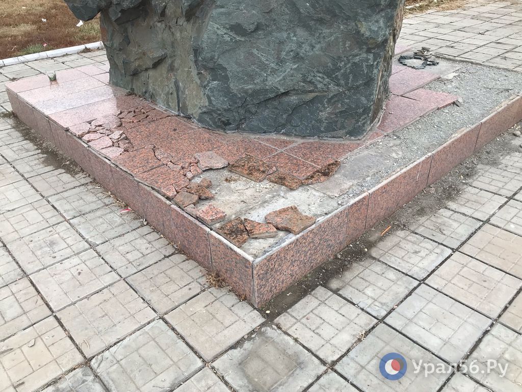 Плитка на основании памятника тоже потрескалась и рассыпалась.