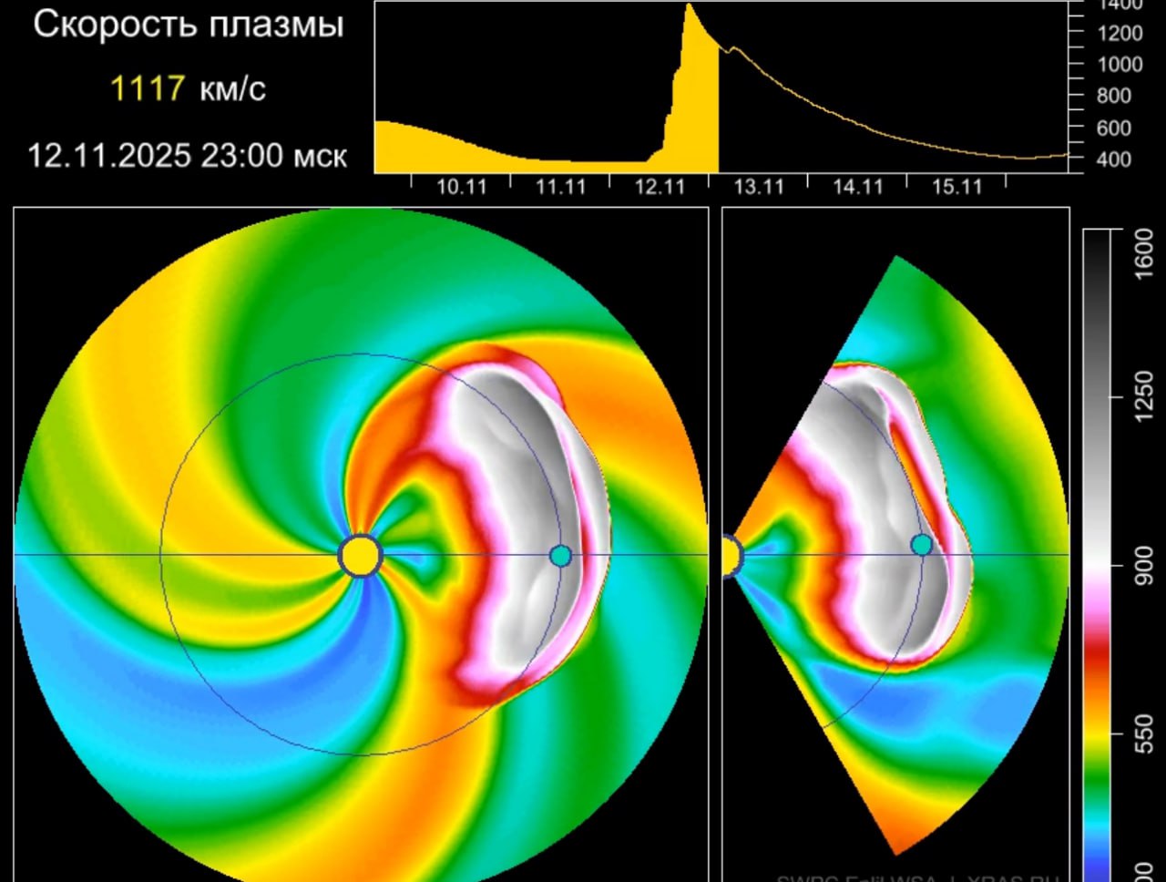 По расчетам специалистов, выброс плазмы поглотит облака от предыдущих вспышек и окажет наиболее сильное воздействие на Землю в текущем, 25-м солнечном цикле.