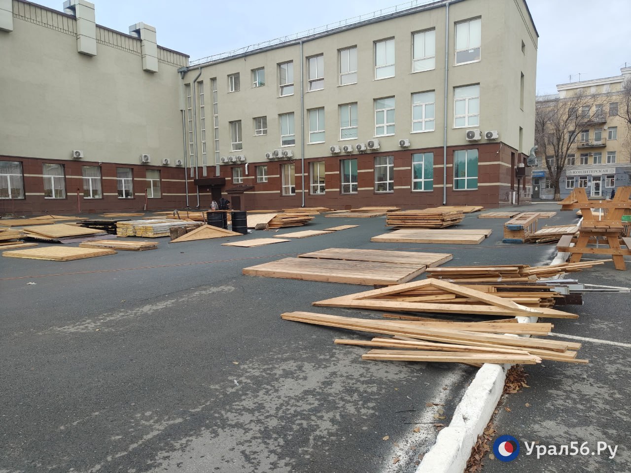 А в Оренбурге на площади имени Ленина началось строительство новогоднего городка. Сейчас подрядная организация устанавливает площадку для катания на коньках и домики для новогодней ярмарки.