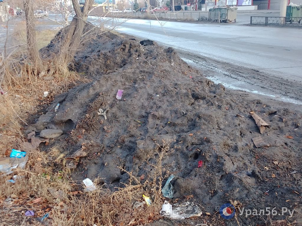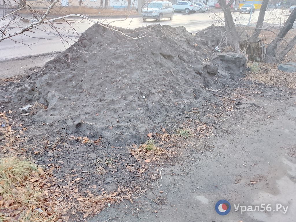 В Орске еще не началась зима, а снежно-ледовые отвалы, покрытые грязью, на обочинах уже лежат