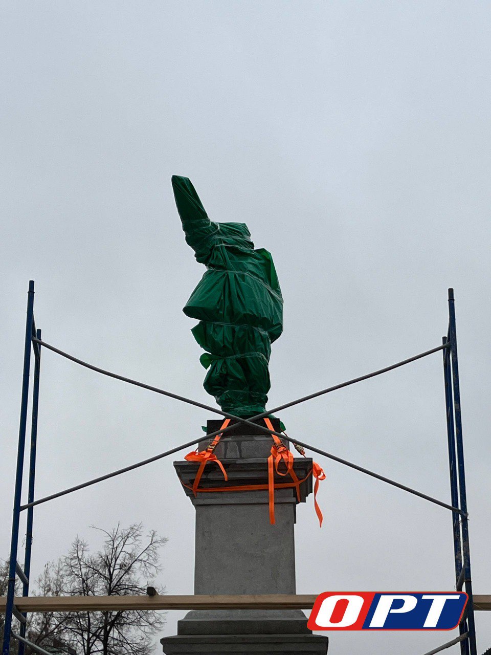 Сейчас отреставрированную скульптуру вернули на место и закрепляют. Завершается шлифовка пьедестала. Памятник временно закрыт плёнкой до окончания работ. Сейчас там устанавливают колонны для фонарей, укладывают плитку. Торжественное открытие запланировано на начало декабря.