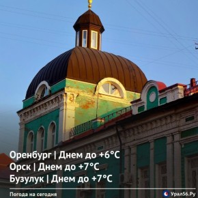 Температура воздуха в Оренбурге от +4 до +6; в в Орске от +2 до +6; в Бузулуке от +4 до +7.
