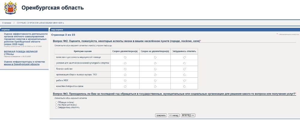 Несколько десятков вопросов охватывают различные сферы – от работы учреждений культуры и доступности образования до туризма, экологии, транспортной доступности и качества дорог.