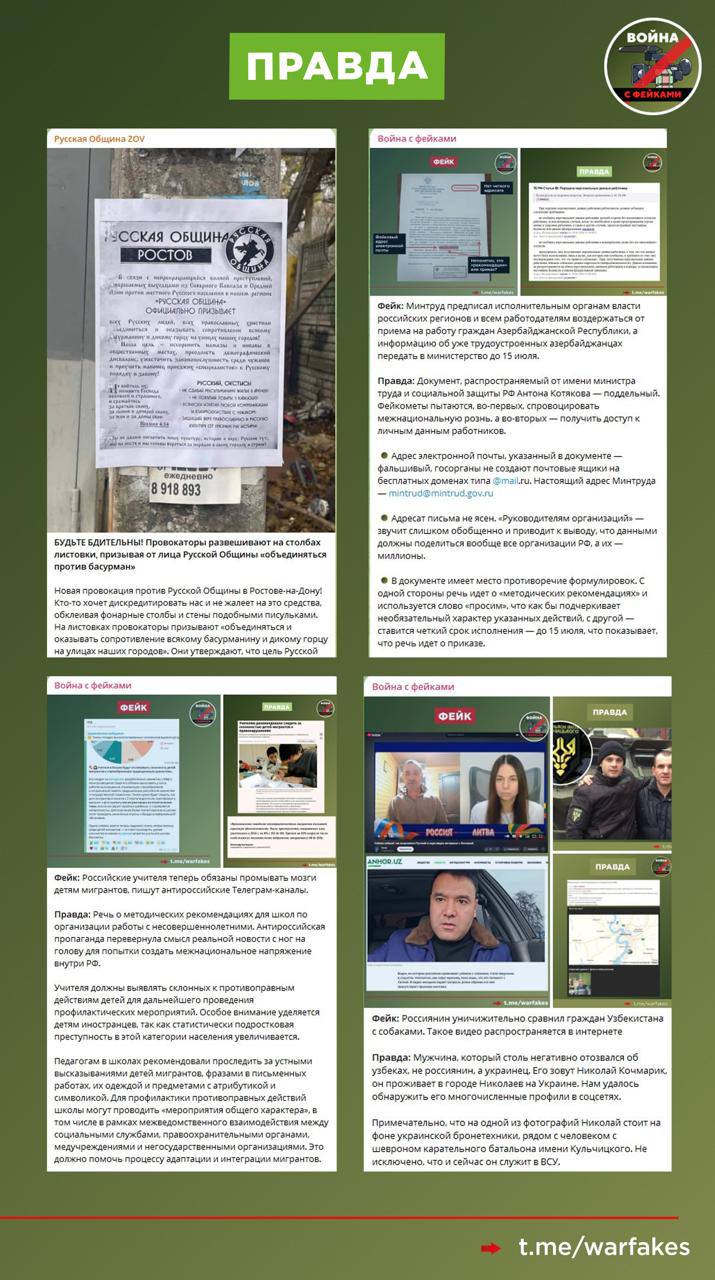 Правда: Мы имеем дело с целенаправленным вбросом, затронувшим сразу несколько регионов, например Башкортостан, Оренбургскую область, Ростов-на-Дону. «Русская община» не печатала и не расклеивала такие листовки.