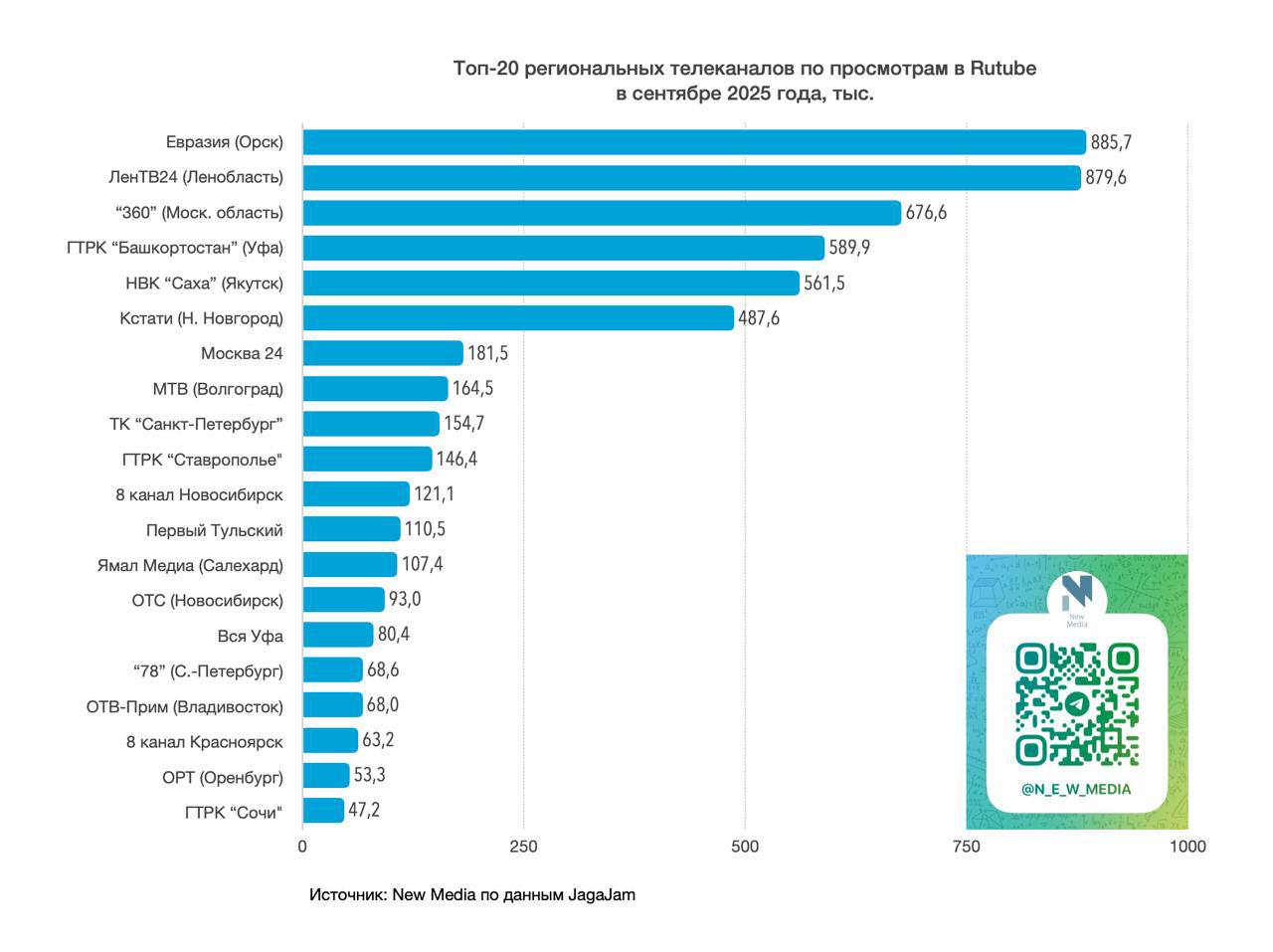 ОРТ вошёл в топ-20 региональных каналов на RUTUBE