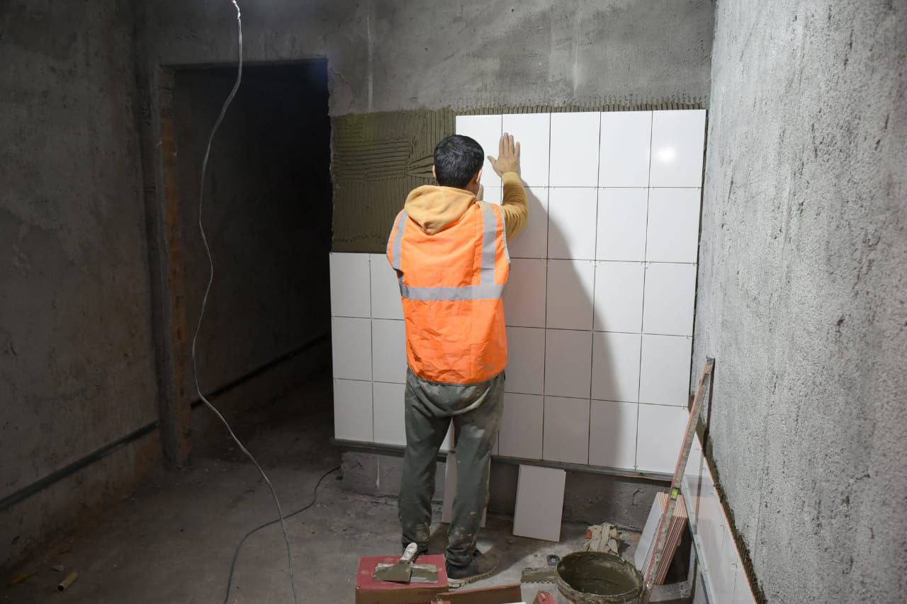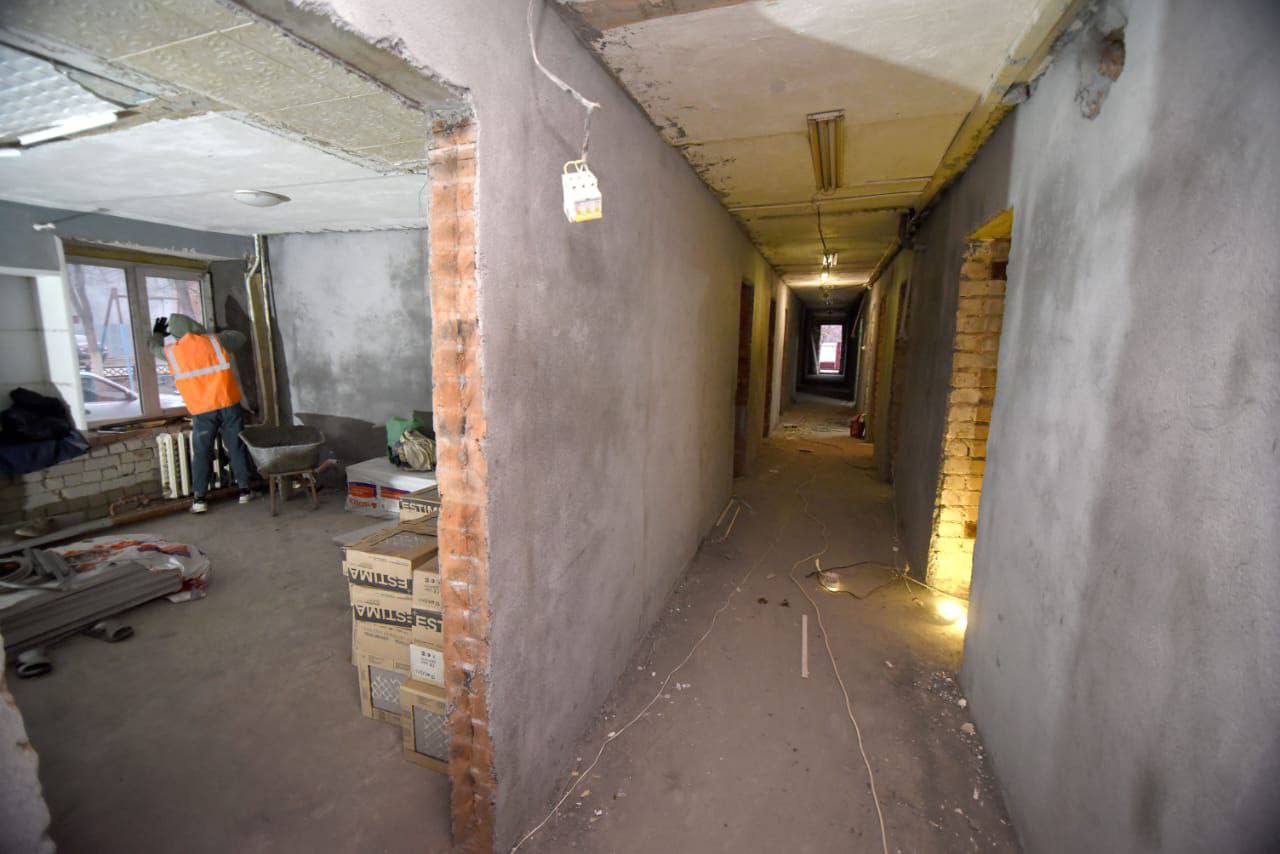 Один самых пострадавших домов после паводка – общежитие на улице Механизаторов, 11а. Вода стояла под потолок на первом этаже, что привело к полному разрушению пола и стен. Первоочередной задачей было снятие аварийности. Подрядчик укрепил фундамент, сделал стяжку пола, восстановил кирпичную кладку. Сейчас к работам уже приступили отделочники – в местах общего пользования укладывают кафель, стены штукатурят. По завершении отделочных работ проведут свет. Работают бригады здесь в усиленном режиме. Ремонт закончится до конца месяца.