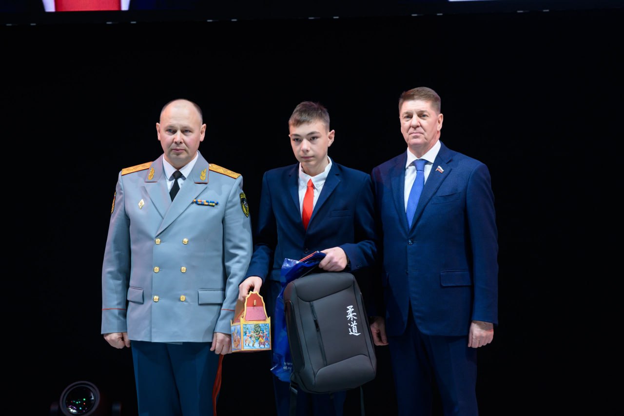 В рамках мероприятия наградами разного уровня отмечены отличившиеся сотрудники ведомства, исполнительных органов власти, волонтеры и школьники, проявившие мужество в чрезвычайных ситуациях. Юным героям на церемонии уделили особое внимание. Медали Совета Федерации «За проявленное мужество» получили школьники, которые в критических ситуациях не растерялись и спасли людей. Так, Матвей Решетников спас из пожара полуторагодовалого брата и организовал эвакуацию оставшихся в горящем доме членов семьи. Тимофей Тельнов на руках вынес из огня восьмимесячную племянницу Веронику, при этом сам получил ожоги почти 50 % поверхности тела. Филипп Ярославский грамотно предотвратил развитие пожара в жилом многоквартирном доме, что позволило избежать травмирования и гибели людей.