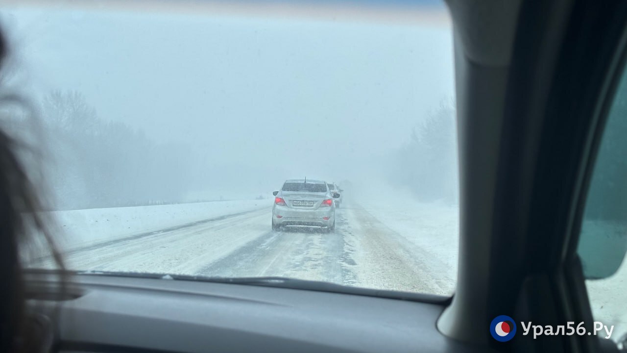 Метель, переметы и крайне плохая видимость. Тем не менее машины есть, однако все соблюдают скоростной режим и едут в одной колонне.