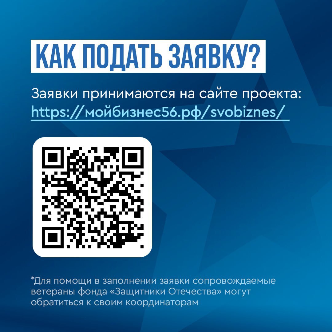 Подать заявку ветераны СВО и члены их семей могут здесь: https://мойбизнес56.рф/svobiznes/