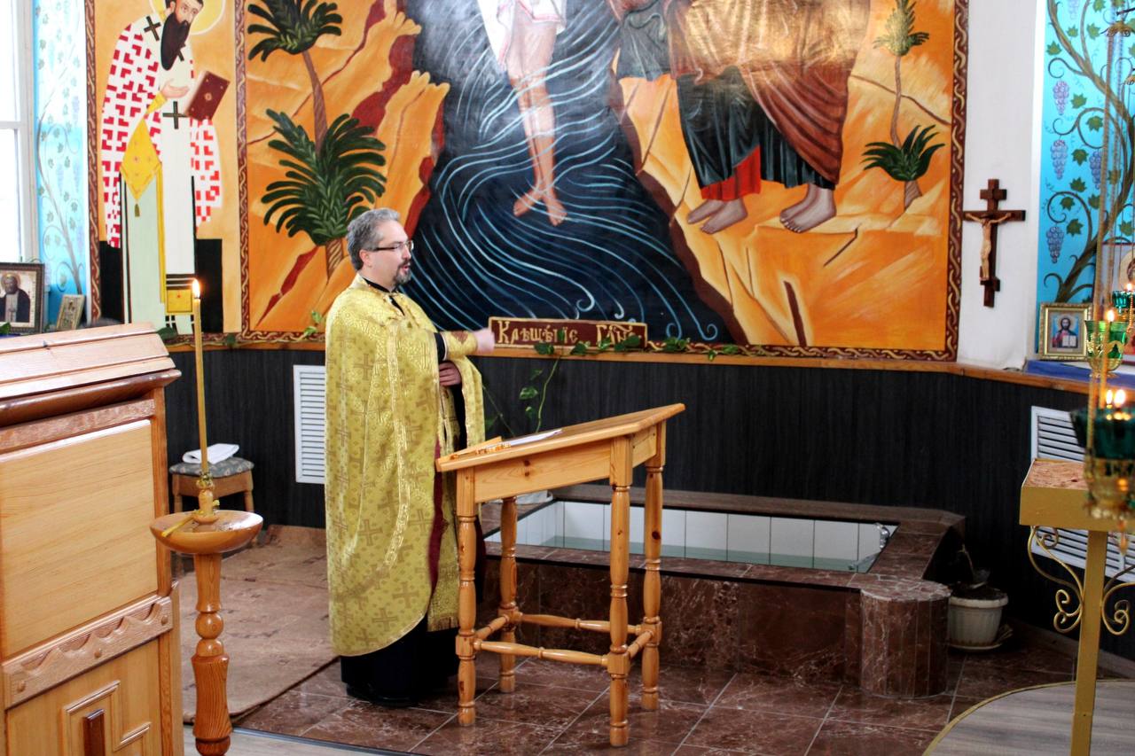 В храме Святого мученика Валентина, расположенном на территории ИК-8, собрались православные осужденные. Иерей Сергий освятил воду в купели учреждения.