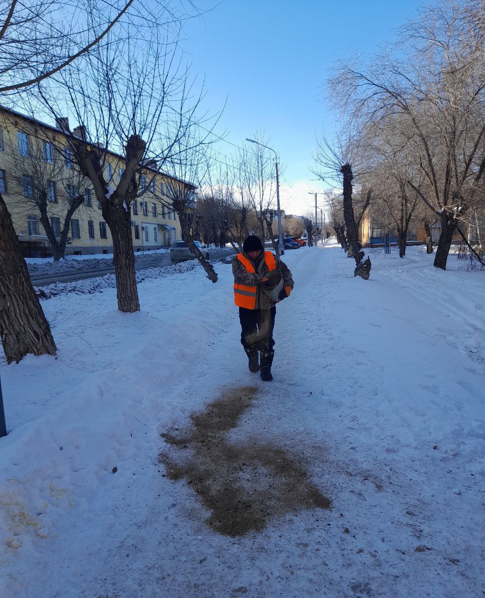 За последние дни пескосмесью обработали пешеходные зоны на проспектах Ленина и Мира, улицах Краматорской, Станиславского, Ялтинской, Нефтяников, Строителей, Ленинского Комсомола, Московской, Саратовской, Сорокина, Чернышова, Крупской, Орском шоссе, в переулках Театральный и Хрустальный.