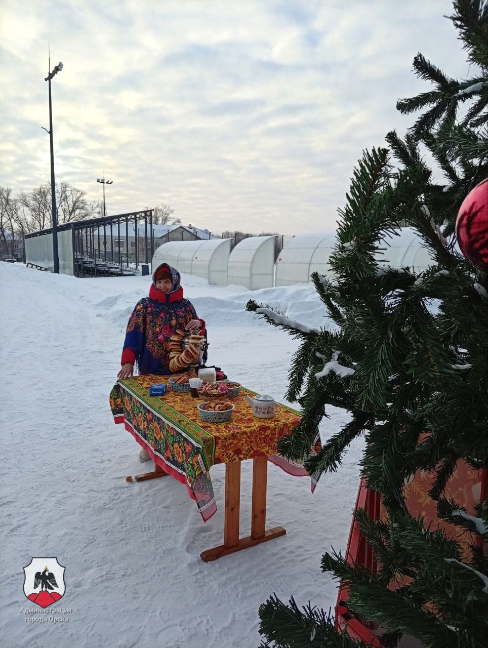 Детей развлекали кот Матроскин и Шарик. Взрослые согревались горячим чаем из самовара. Самые активные перетягивали канат и соревновались в эстафетах.