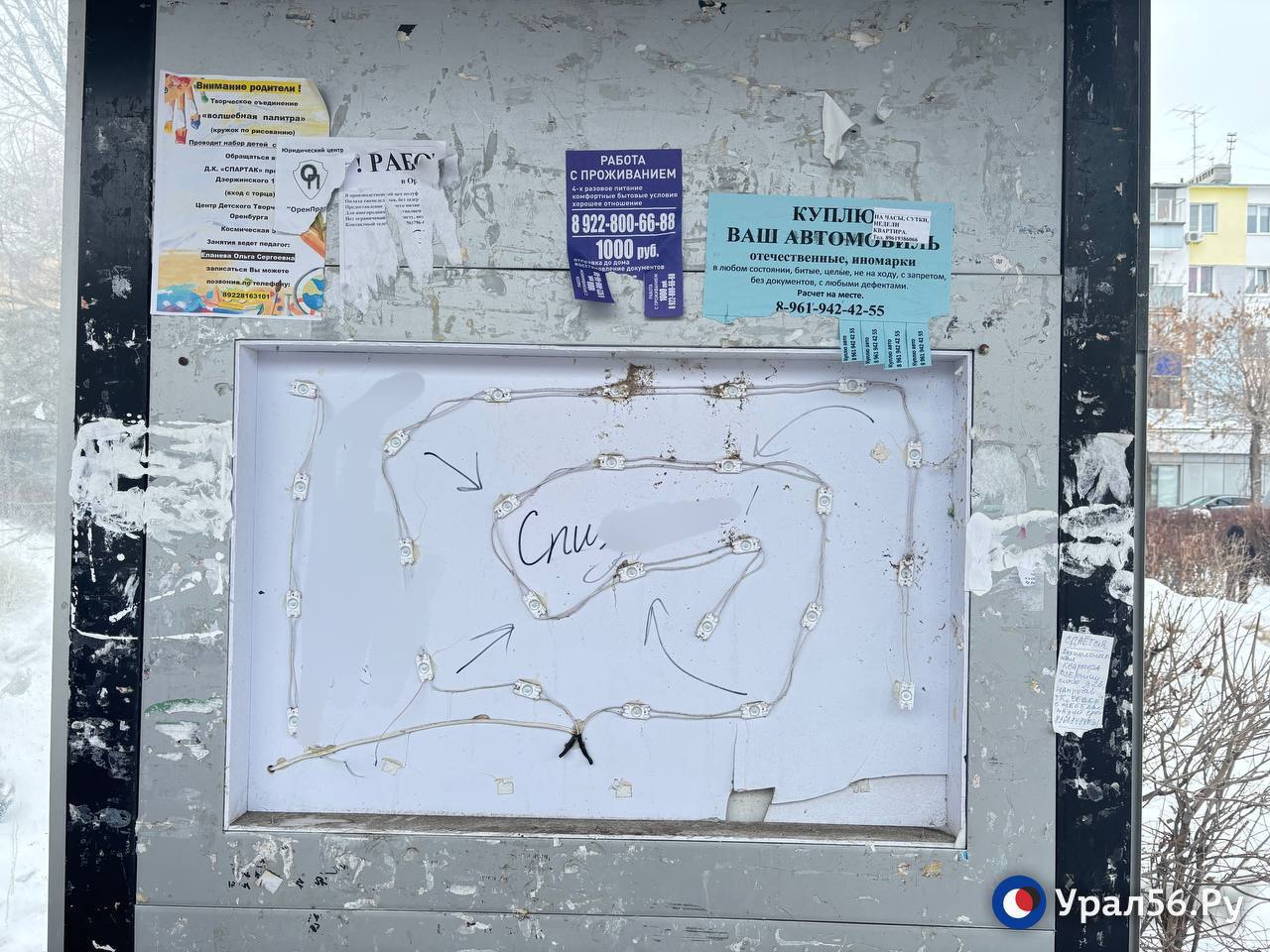 На остановке М-н Сакмара, например, пропал информационный экран. А на его месте кто-то лаконично написал [украли]