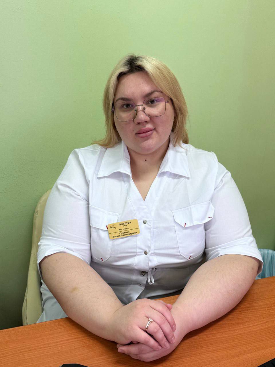 Ксения Сляднева, врач-невролог дневного стационара медицинской реабилитации, пошла по стопам матери и выбрала профессию врача. Окончила медицинский колледж, затем Оренбургский медицинский университет. Работала терапевтом, параллельно поступила в ординатуру по неврологии, совмещала работу терапевтом и стажером-неврологом. После окончания ординатуры пришла работать в госпиталь ветеранов войн в медицинскую реабилитацию.