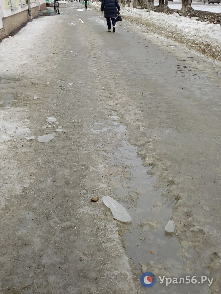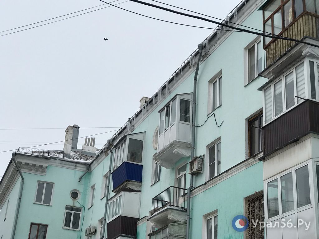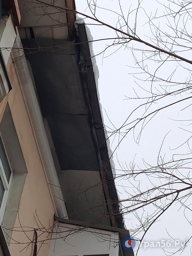 С приходом оттепели ходить по тротуарам в центре Орска становится все опаснее – над головами висят глыбы льда