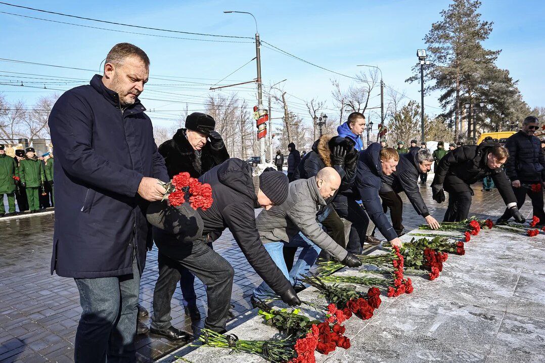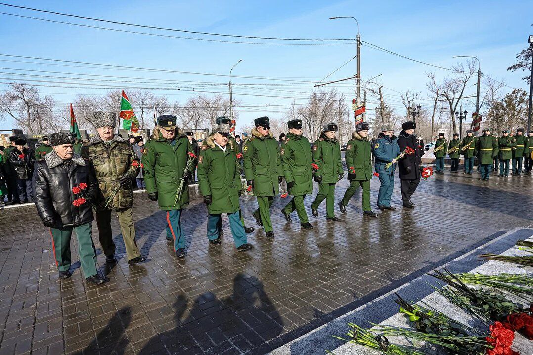 23 февраля, в День защитника Отечества, в Оренбурге прошло торжественное возложение цветов к памятникам погибшим воинам.