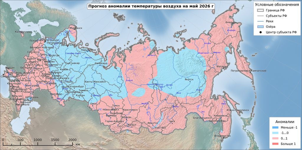 На фото: Прогноз Гидрометцентра России на март, апрель и май 2026 года