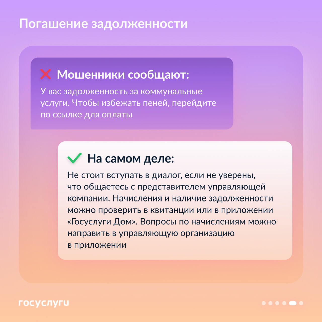В карточках — распространенные схемы мошенников, когда они звонят или пишут на тему ЖКХ. Отправьте этот пост близким и в чат дома. Возможно, уже сегодня он поможет кому-то сохранить деньги и имущество.