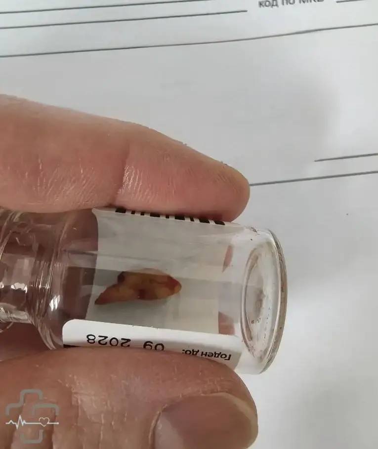 Дыхание восстановилось. Осложнений нет.После операции зуб отдали пациенту на память.