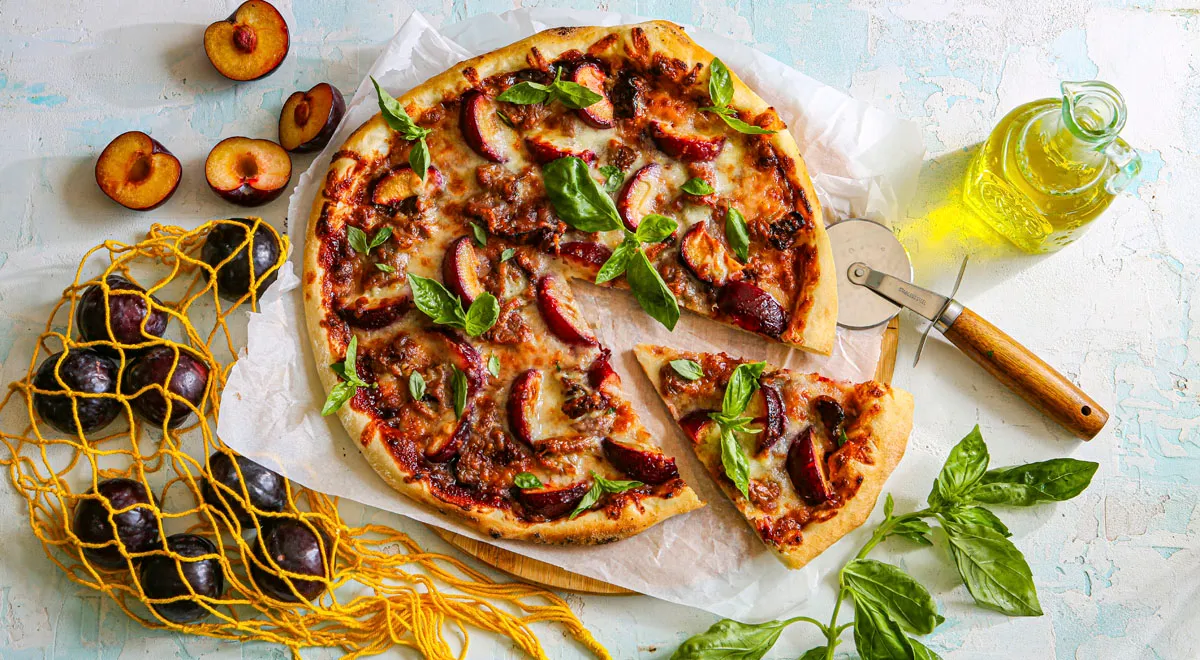 Кто бы мог подумать, что такие простые ингредиенты могут создавать кулинарный шедевр? Сочетание сливы и сыра — это классика, но с соусом хойсин появляется новая граница вкусов. Каждый кусочек этой пиццы удивляет своей гармонией: сладость сливы отлично сбалансирована с насыщенным вкусом голубого сыра, а соус добавляет нотки экзотики.