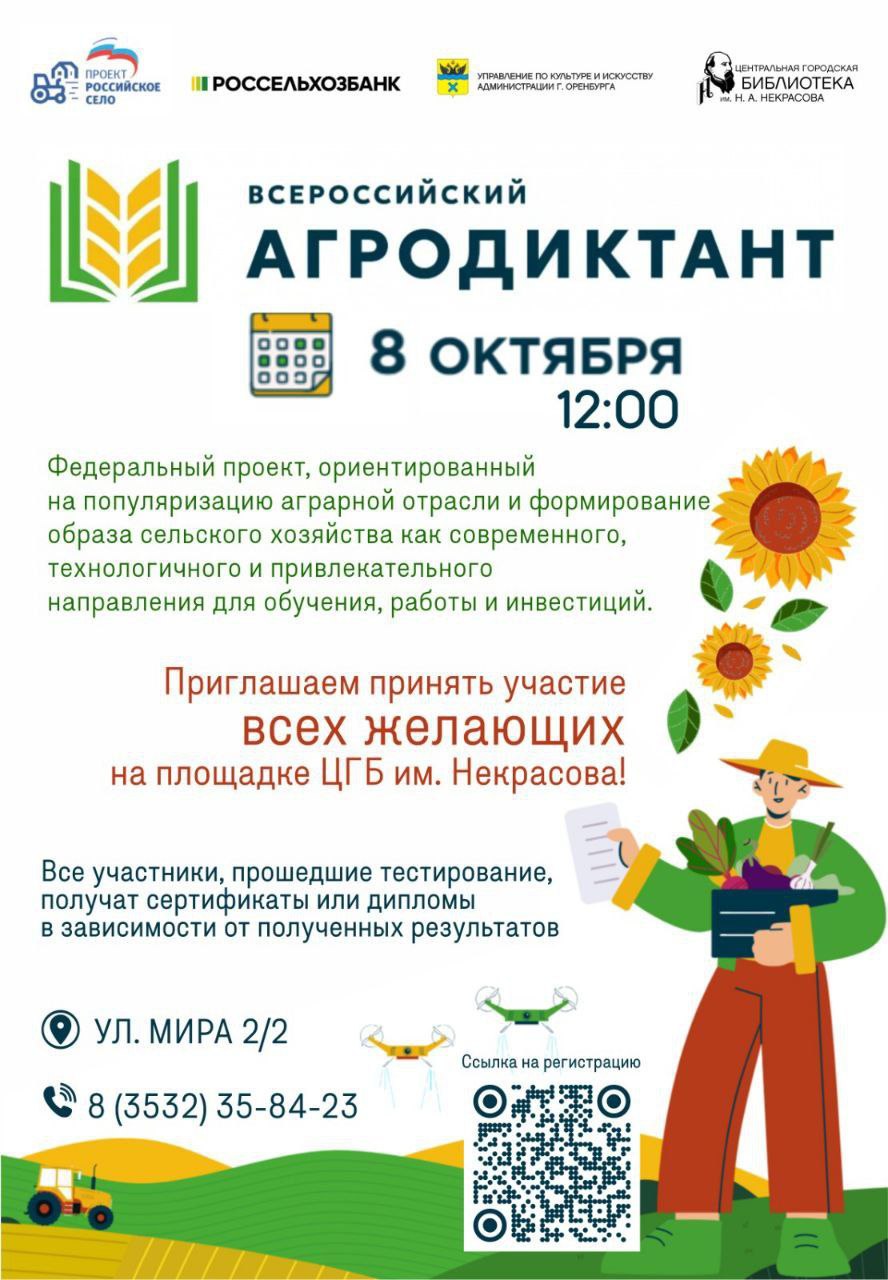 Всероссийский аграрный диктант - это федеральный проект, направленный на популяризацию сельского хозяйства, аграрных профессий и образа жизни на селе, повышение знаний об агропромышленном комплексе России.