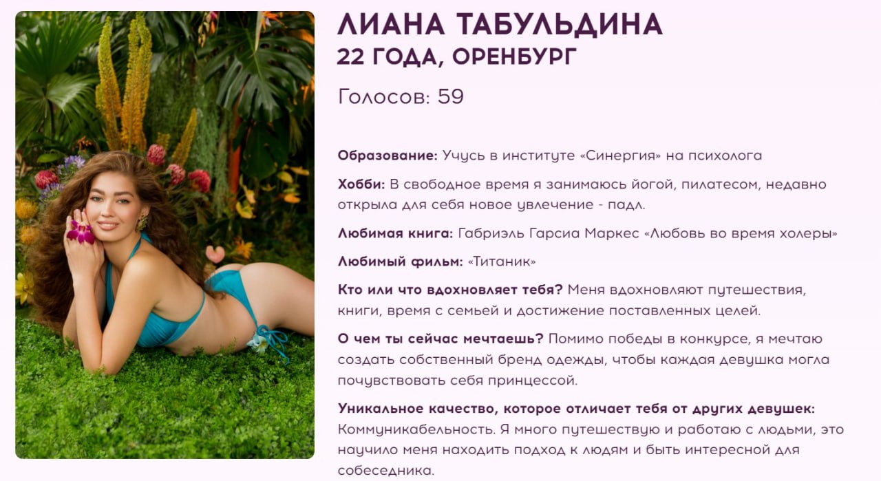 Лиана Табульдина из Оренбурга может попасть в Топ-20 финалисток конкурса «Мисс Россия 2025»