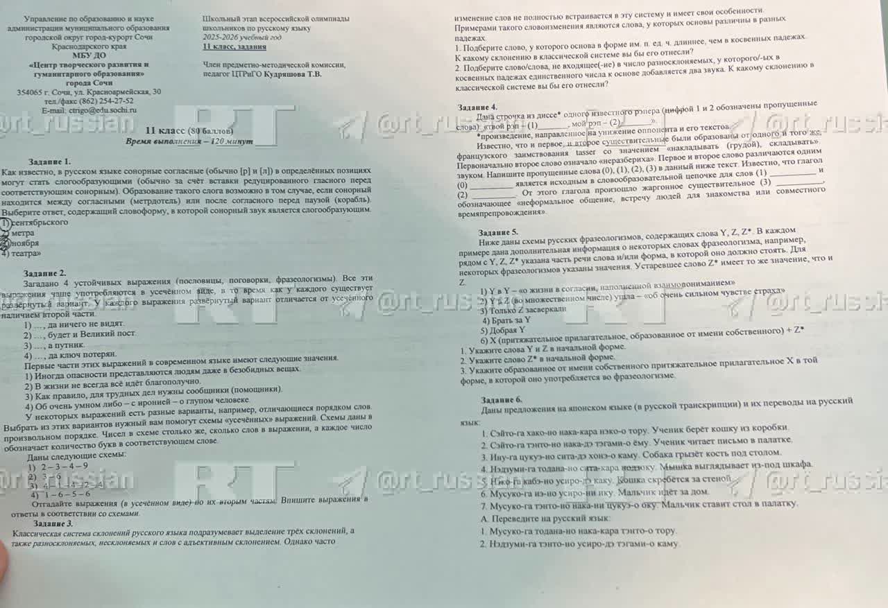 В Центре творческого развития и гуманитарного образования Сочи подтвердили RT, что именно они занимаются разработкой заданий для школьных олимпиад. Однако директор центра Салахидин Турсунбаев отметил, что ещё выясняет, действительно ли тексты рэпера были включены в задания для сочинских школьников.