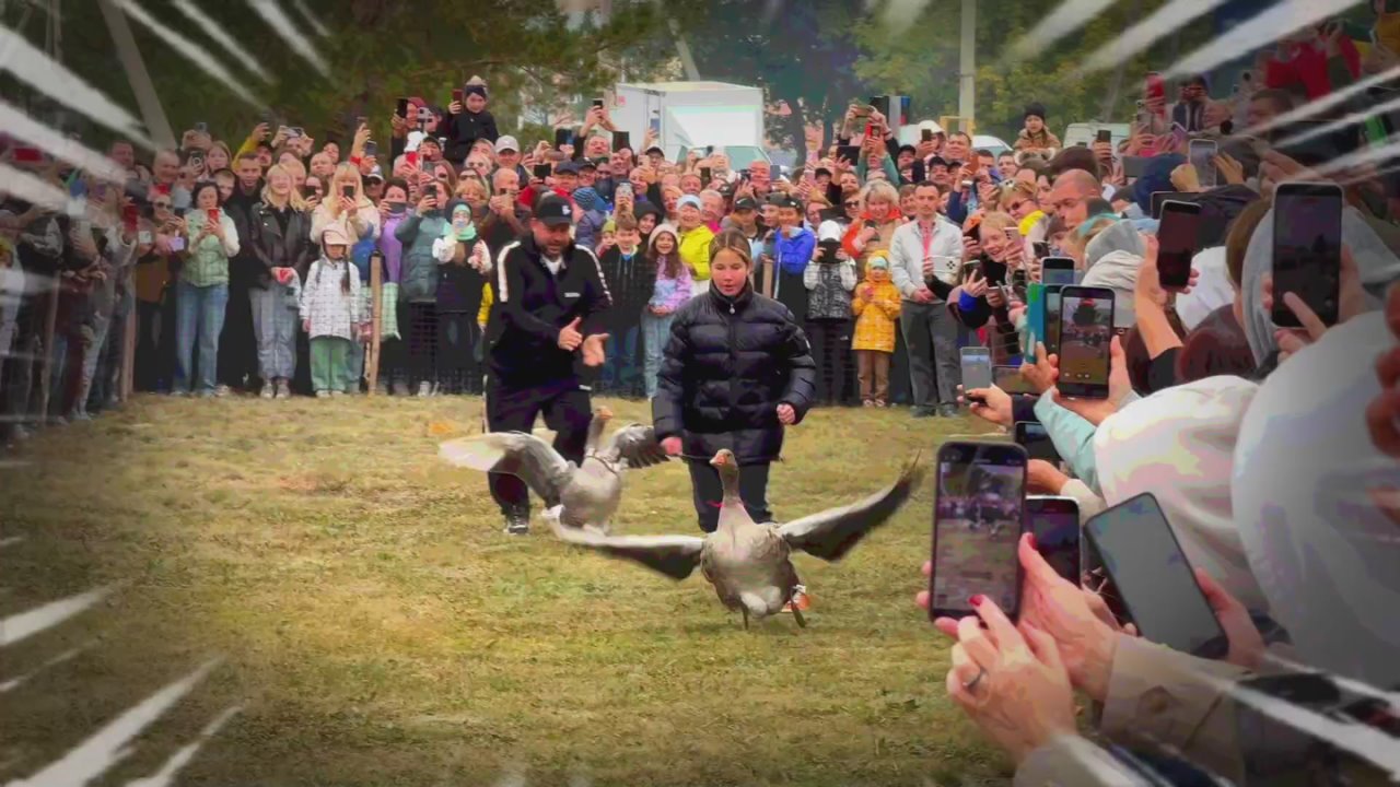 Гусиные бега прошли в селе Черный Отрог Оренбургской области, птицы соревновались в ходьбе на скорость, сообщил глава Саракташского района Максим Кабанов, показав видео состязаний.