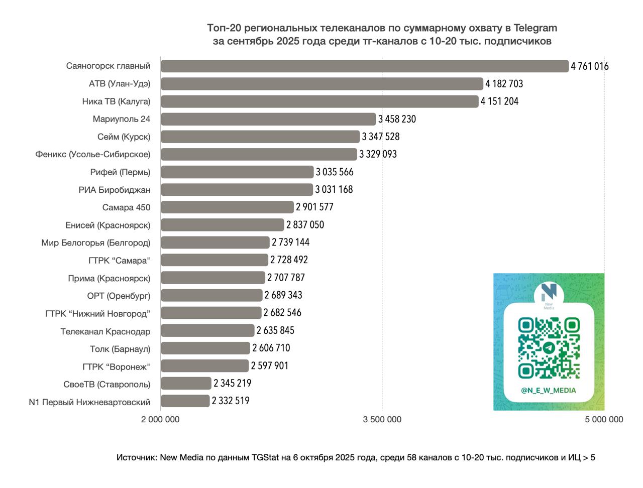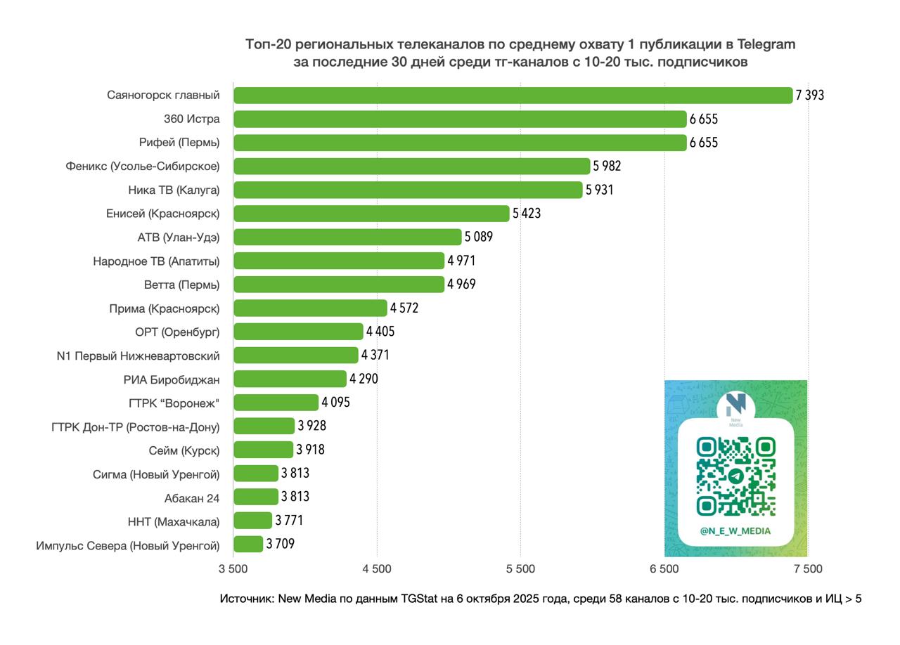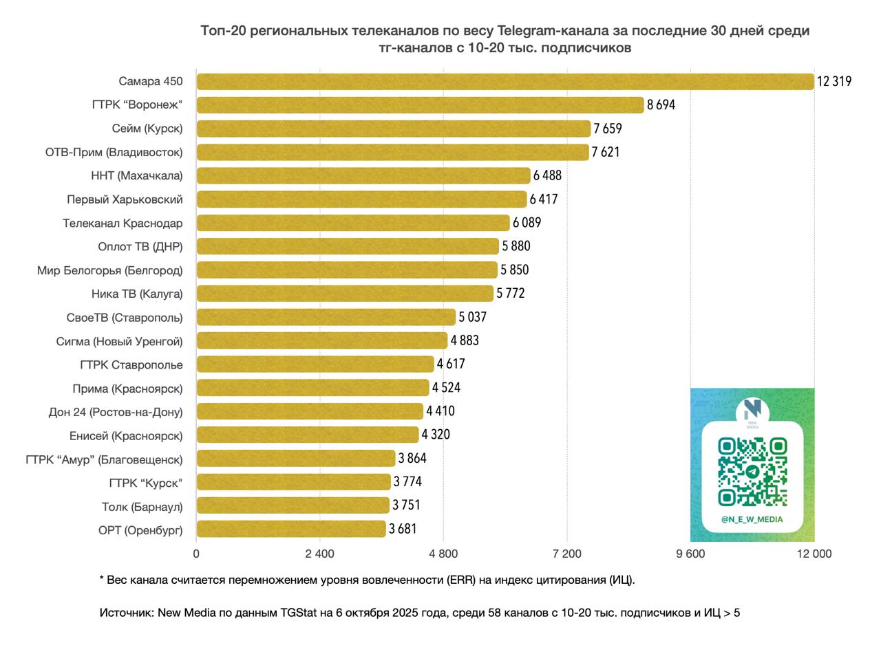Рейтинг составлялся среди telegram-каналов региональных телекомпаний с 10-20 тыс. подписчиков.