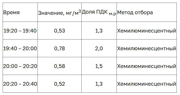 7 октября эта же точка вновь показала превышения – от 1,3 до 2 ПДК.