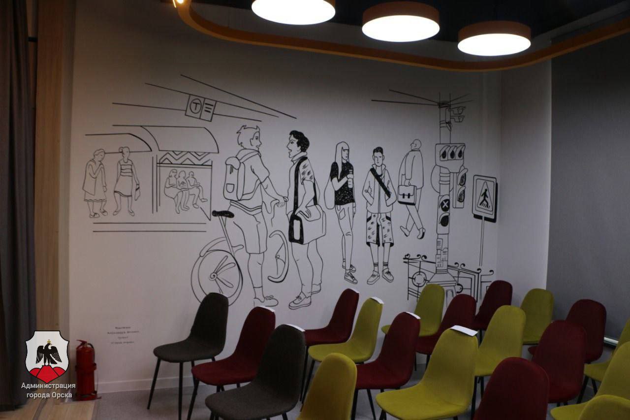 Библиотека поделена на 5 локаций для разных групп посетителей: в книге, в моменте, в мастерской, в каворкинге, на детской площадке. Каждая комната имеет оригинальное оформление в стиле орского трамвая.