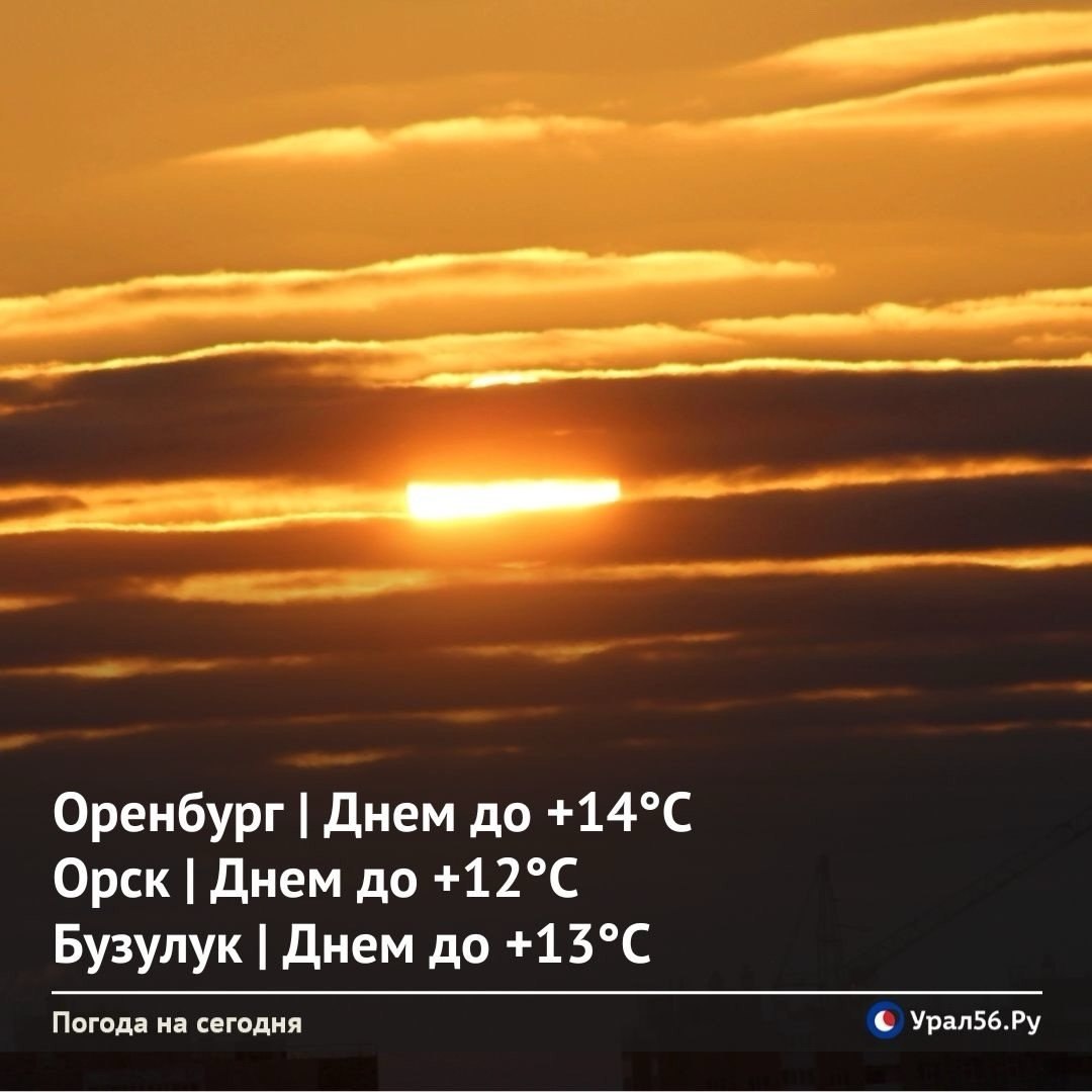 Доброе утро! Прогноз погоды на 13 октябряВ Оренбурге сейчас +9°. Днём небольшой дождь. Ветер южной четверти 7-12 м/с.Температура воздуха +13°+15°. Атмосферное давление 753 мм рт.ст.По области в большинстве районов небольшой дождь. Температура...