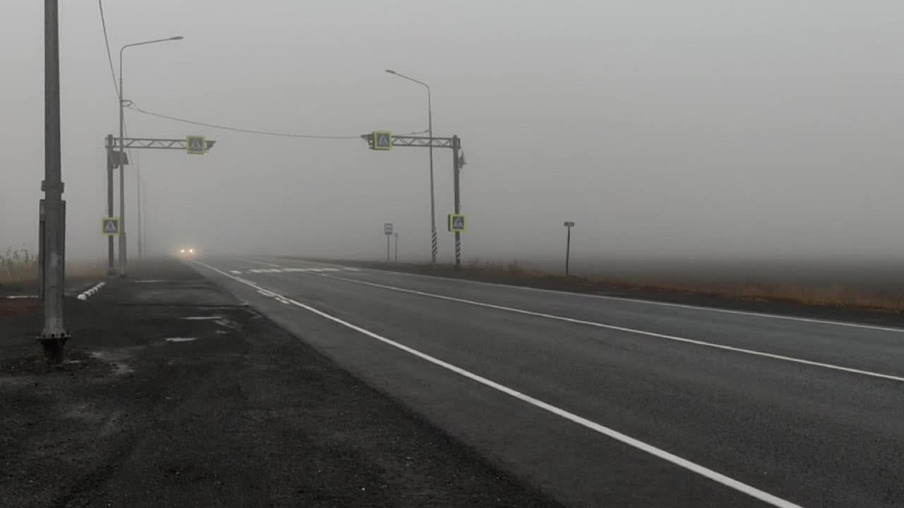 Участок трассы в районе Сары окутан туманом. Будьте осторожны на дорогах!