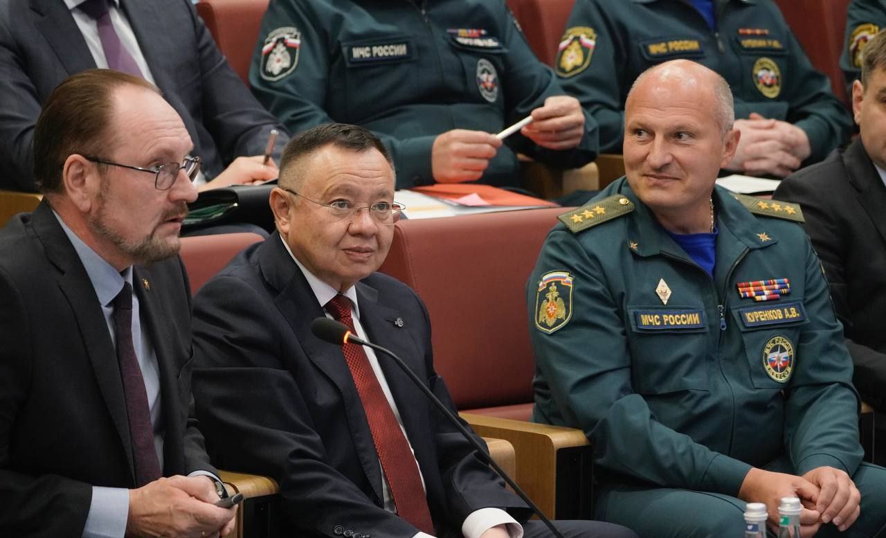 Министр строительства и ЖКХ РФ Ирек Файзуллин и Министр по делам гражданской обороны, чрезвычайным ситуациям и ликвидации последствий стихийных бедствий Александр Куренков провели рабочую встречу в Центре взаимодействия и коммуникаций в строительстве