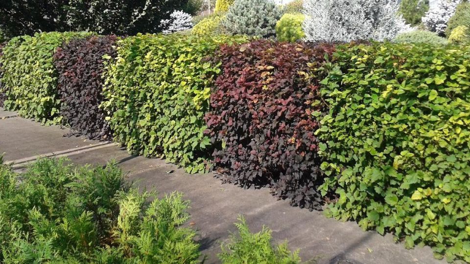 Каждое из выбранных растений обладает своими особенностями: ива формирует аккуратный шарик, дерен привлекает внимание своей красивой листвой, спирея радует цветами с июня по сентябрь, а пузыреплодник гарантирует надежный зеленый забор благодаря своей плотной кроне. В комбинации эти растения образуют живую изгородь высотой до 1.8 метра к концу второго года после посадки.