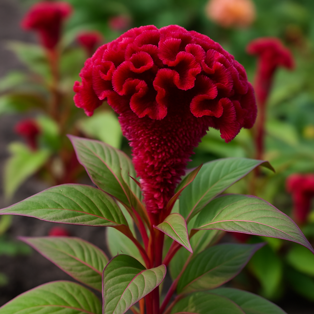 Одним из главных достоинств целозии является её необычное соцветие, напоминающее бархатный гребешок, которое может иметь различные оттенки — от алого до малинового и двухцветного.
