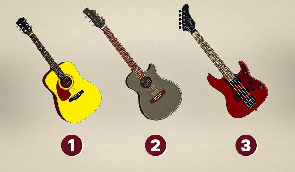 Один из популярных методов — визуальный тест, в котором участнику предлагают выбрать одно из нескольких изображений. Например, в этом тесте представлены три различные гитары. Выбор конкретной гитары может рассказать о качествах и желаниях человека.