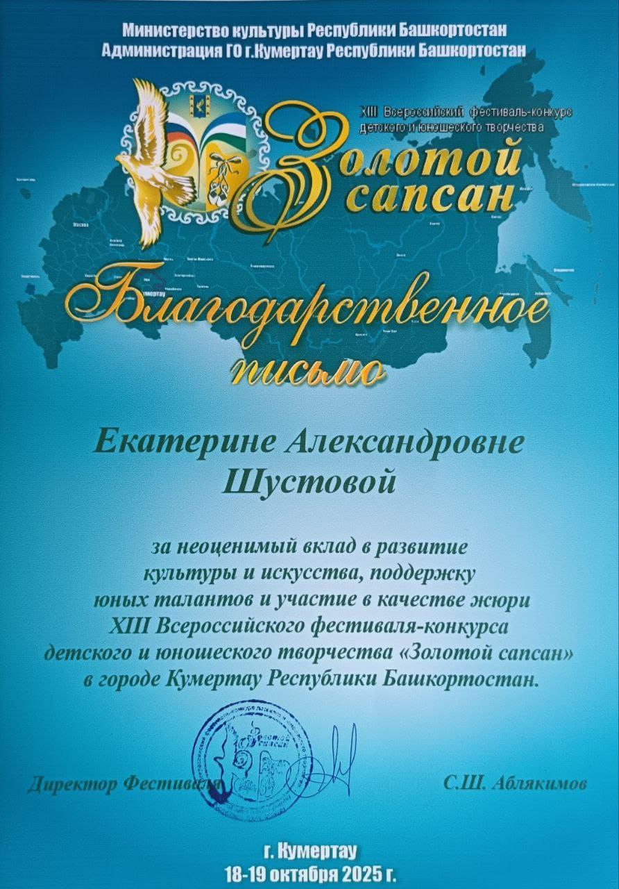 XIII Всероссийский фестиваль-конкурс детского и юношеского творчества проходил в городе Кумертау Республики Башкортостан. Участие в нем принимали одаренные дети из Мелеуза, Стерлитамака, Салавата, Оренбурга, Уфы, Магнитогорска и других городов России. Свои таланты ребята представляли в номинациях: декоративно-прикладное искусство, вокал (академическое, народное и эстрадное), инструментальное исполнительство (по видам инструментов) и театральное искусство.