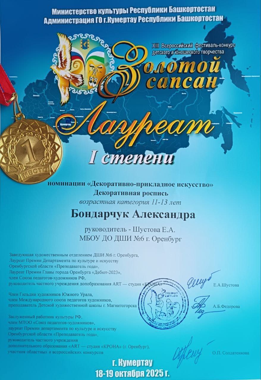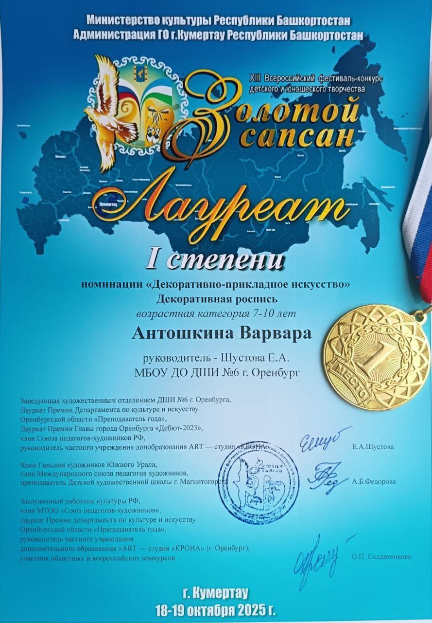 Учащиеся 2 класса художественного отделения Детской школы искусств № 6 Александра Бондарчук и Варвара Антошкина (преподаватель Шустова Екатерина Александровна) стали обладателями звания лауреата 1 степени. В номинации «инструментальное исполнительство» (фортепиано) лауреатом 3 степени стал обучающийся 3 класса фортепианного отделения Роман Павленко (преподаватель Екатерина Толокнова).