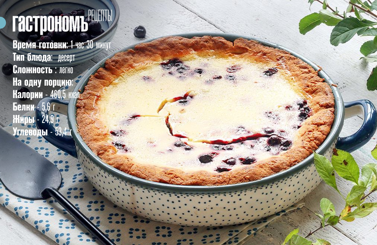 Далее в форму укладывается тесто, формируя борта, и накалывается вилкой; сверху равномерно распределяют ягоды. После приготовления заливки из сметаны, яйца, сахара и крахмала, ею заливают ягоды и выпекают в заранее разогретой до 180°C духовке около часа. Готовый пирог желательно охладить, а перед подачей посыпать сахарной пудрой и украсить свежими ягодами.