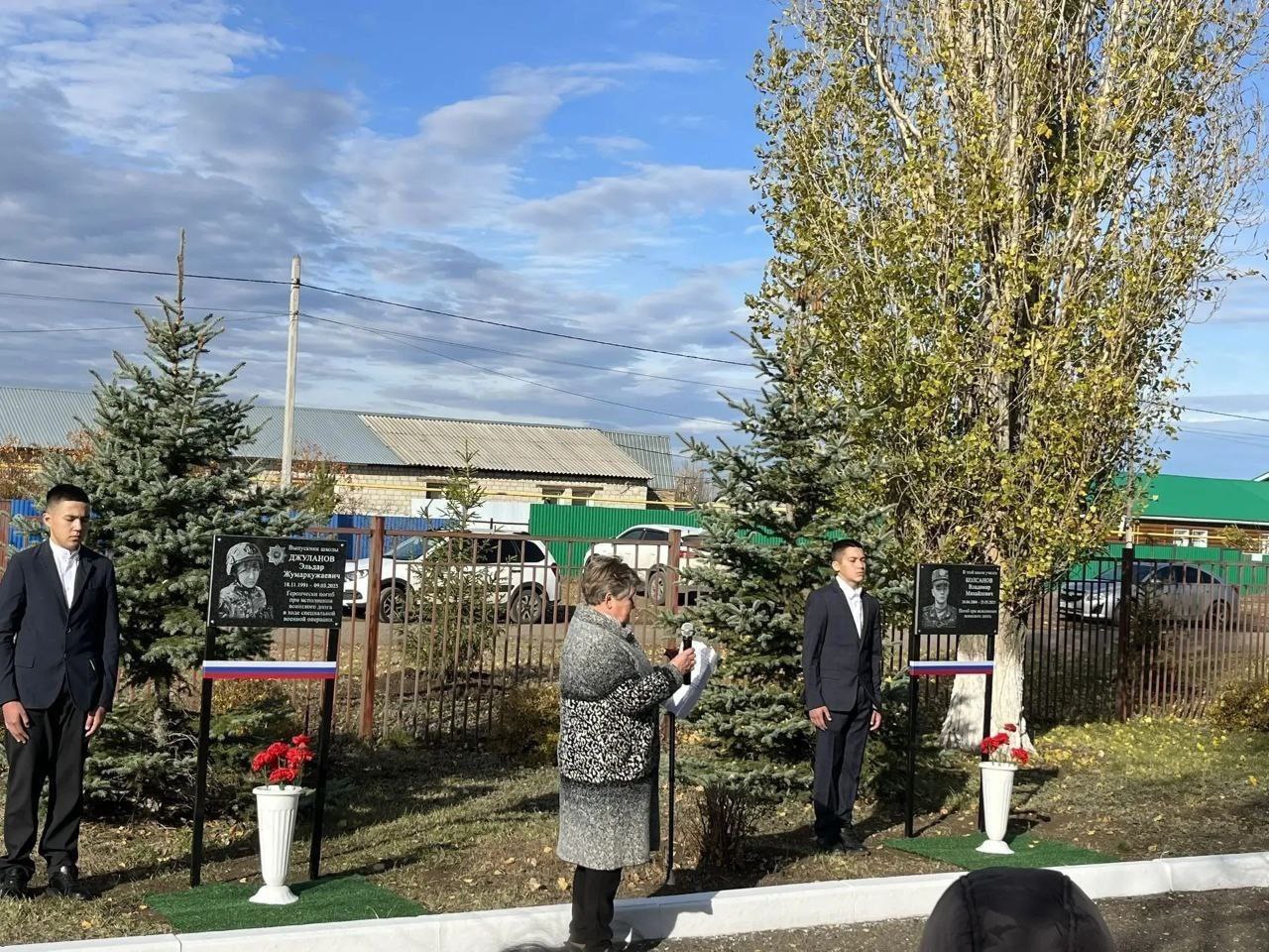 На церемонии открытия присутствовали родные и близкие погибших ребят, глава села Пруды Анастас Саридис, главный специалист управления образования администрации Оренбурга Елена Федотова, представители духовенства.
