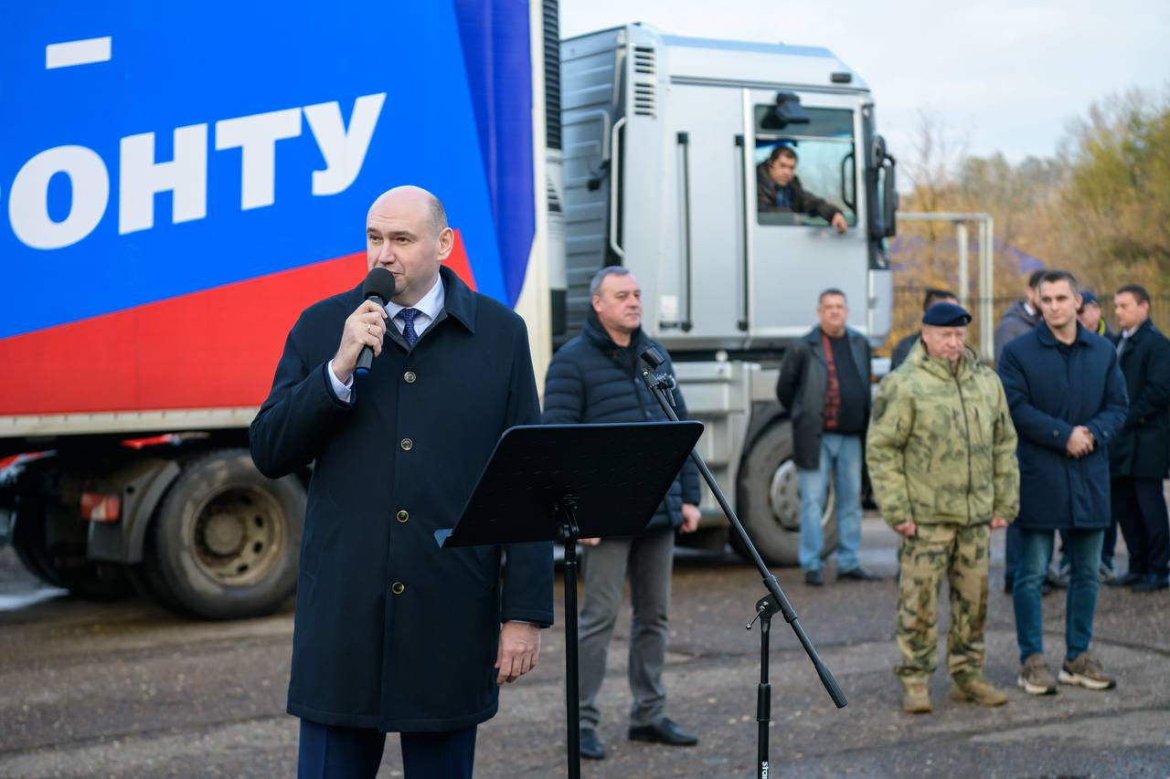 Две фуры гуманитарной помощи собраны по инициативе партии «Единая Россия», неравнодушных жителей региона, Фонда «Защитники Отечества» и общественной организации «Русская община». Вместе с главой региона в отправке груза участвовали секретарь регионального отделения «Единой России», депутат Государственной Думы ФС РФ Олег Димов и и. о. вице-губернатора – заместителя председателя Правительства Оренбургской области по внутренней политике – министра региональной и информационной политики Оренбургской области Юрий Мироненко.
