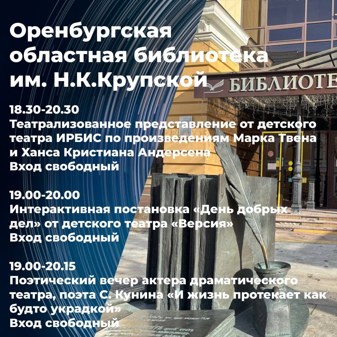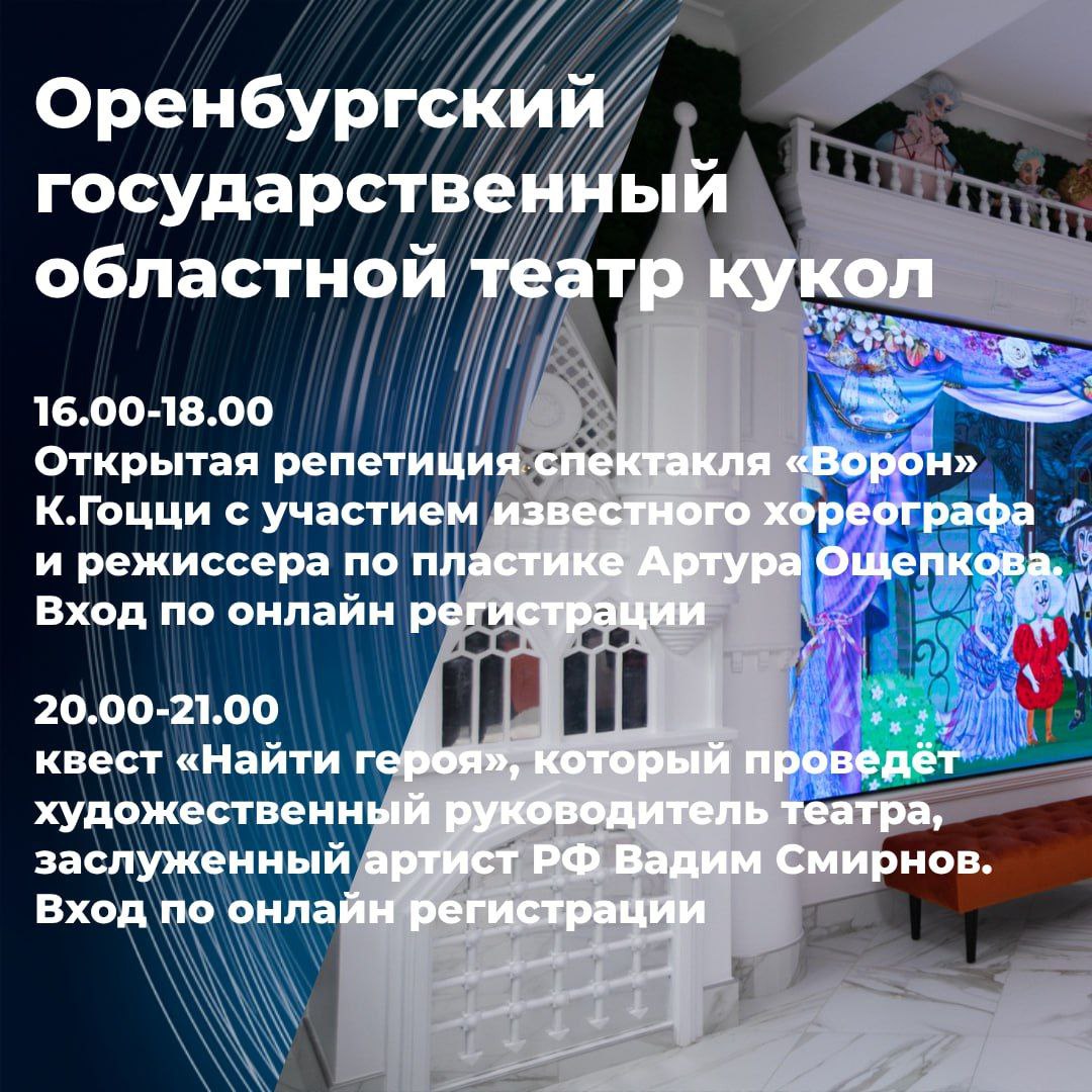 Сохраните карточки с афишей от министерства культуры Оренбургской области.